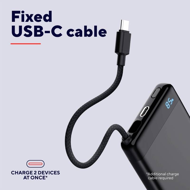 Особливості:можна заряджати 2 пристрої одночасно, вбудований кабель USB-C, безпечна конструкція для аеропорта