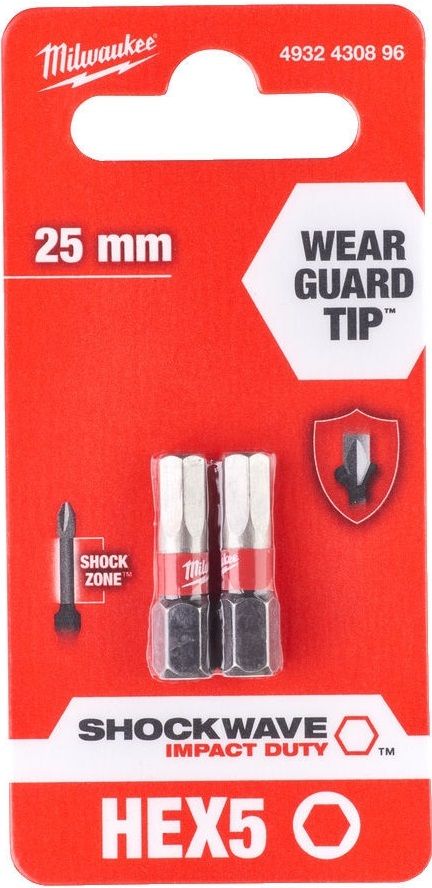 Біти Milwaukee Shockwave, Hex5х25мм, набір 2шт