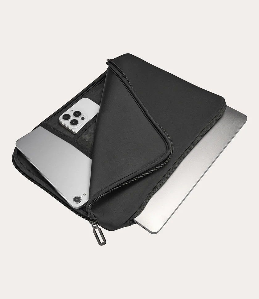 Чохол Tucano Doppio BFDOP1516-BK — стильний захисник для ноутбуків 15"/16"! Виготовлений із міцного 4-міліметрового неопрену та переробленого пластику, він ніжно обіймає ваш MacBook Pro 16" чи інший ноутбук, а протиковзка система та кутові клапани тримають його на місці. Два відділення — для пристрою та аксесуарів із сітчастою кишенею — роблять його ідеальним для тих, хто цінує порядок і захист із ноткою екосвідомості.
