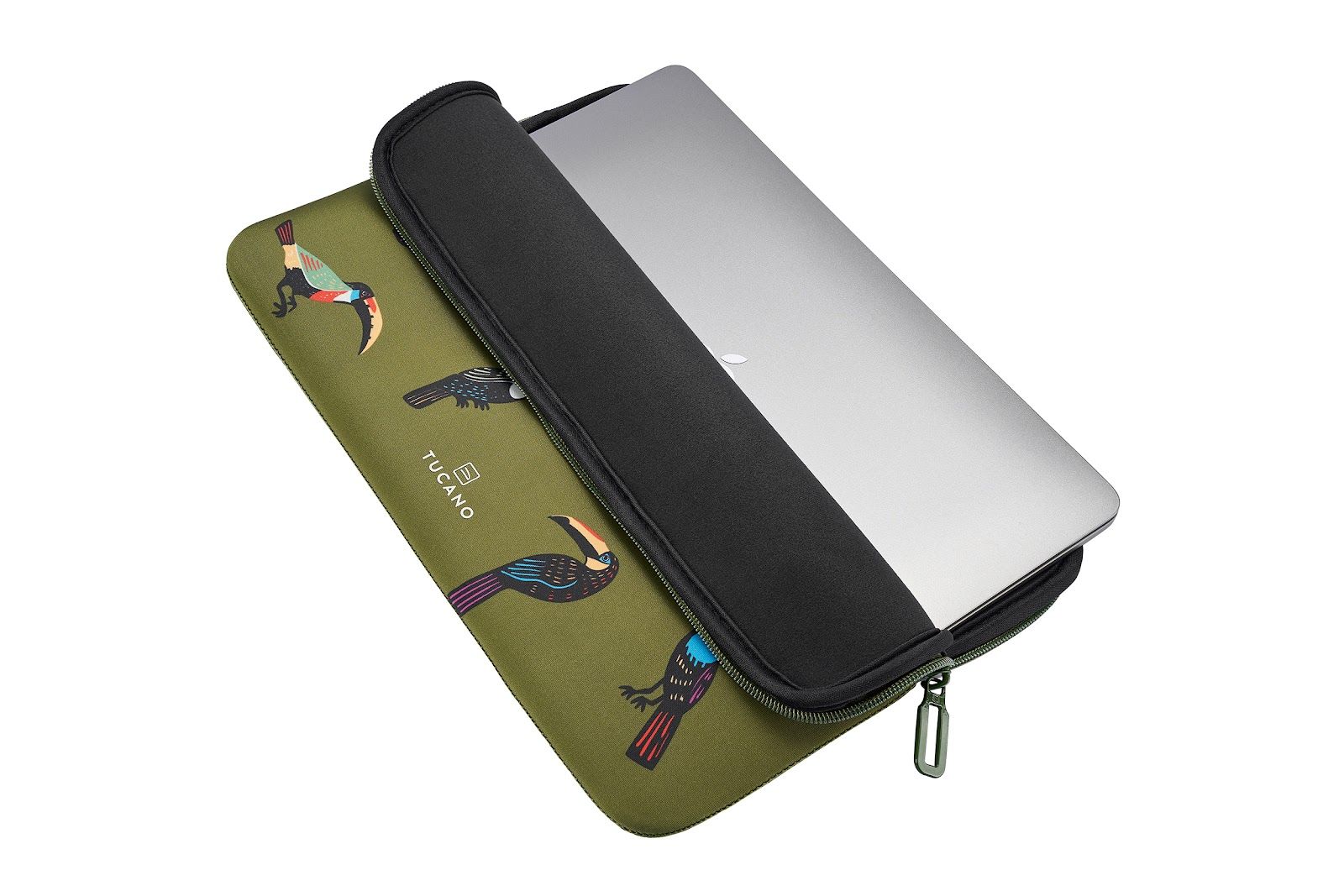 Чохол Tucano Tucani 12"/13" створено на честь 40-річчя Tucano. Модель виготовлена з міцного неопрену та прикрашена яскравим принтом із туканом. Спеціальна система проти випадкового вислизання забезпечує надійну фіксацію ноутбука під час транспортування. Плаский шов надає тонкий профіль і гарне прилягання. М’яка внутрішня підкладка запобігає подряпинам і зберігає охайний вигляд пристрою.