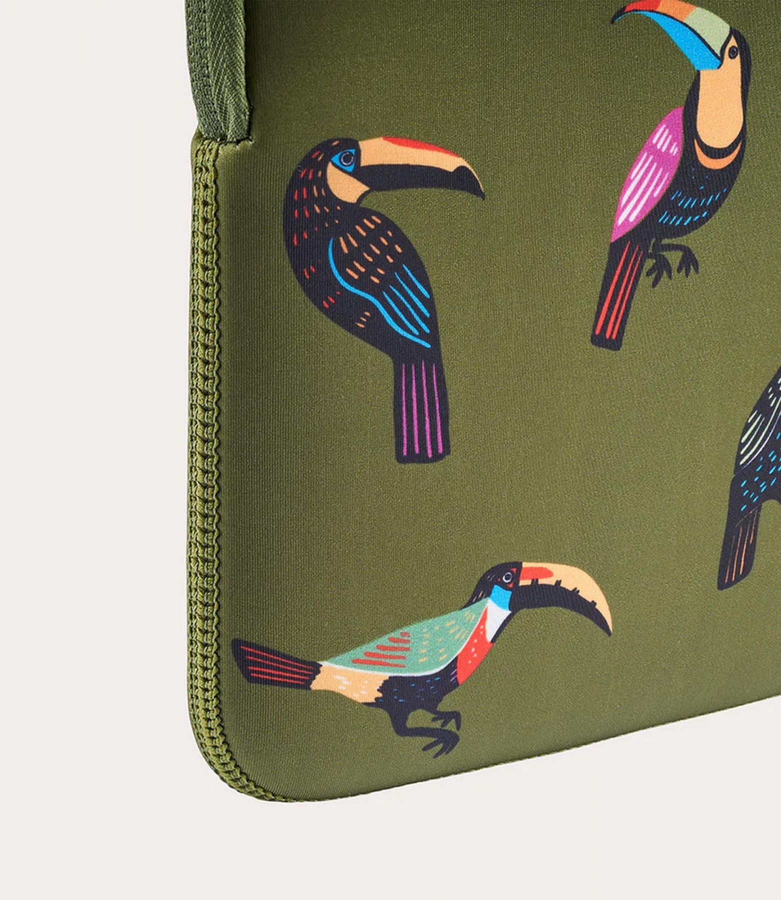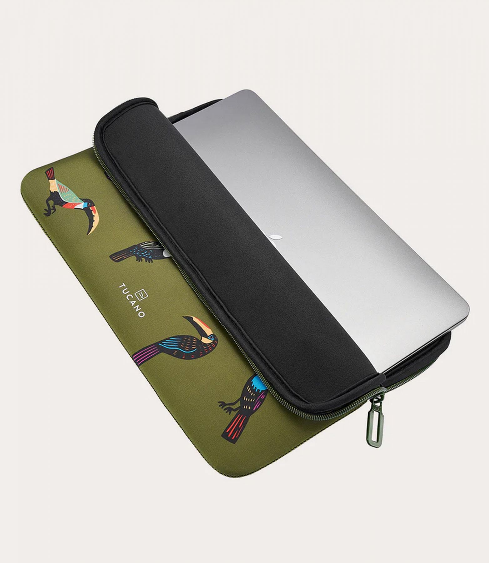 Чохол Tucano Tucani 15"/16" створено на честь 40-річчя Tucano. Модель виготовлена з еластичного неопрену й прикрашена яскравим принтом із туканом. Anti-Slip System® надійно утримує ноутбук усередині, запобігаючи вислизанню під час транспортування. Плаский шов забезпечує щільне прилягання та тонкий профіль. М’яка внутрішня підкладка оберігає пристрій від подряпин.