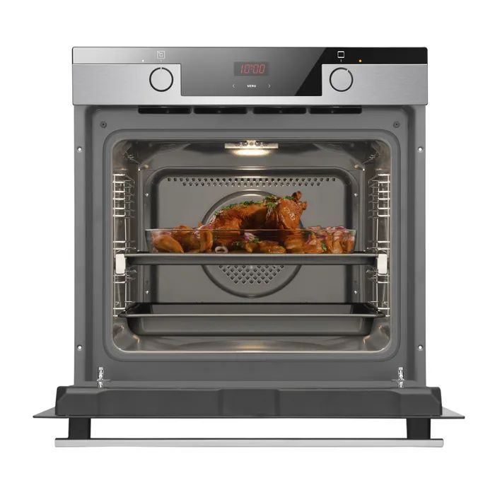Hansa BOEIS69407 — електрична вбудована духова шафа об'ємом 65 л із класом енергоефективності A та 12 функціями приготування, включно з конвекцією, грилем, режимом піци та SoftSteam. Функція м'якої пари SoftSteam зволожує камеру під час приготування, зберігаючи соковитість страв і скоринку випічки. Сенсорне керування, світлодіодний дисплей, телескопічні напрямні та 5 рівнів випікання забезпечують точний контроль і зручність у щоденному використанні. Тридверне скло та система м'якого закриття підтримують безпеку і комфорт при роботі.