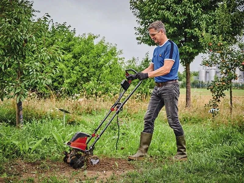 Електричний культиватор Einhell GC-RT 1545 M є легким та надійним садовим інструментом для ефективної обробки ґрунту. Він оснащений двигуном потужністю 1500 Вт, який забезпечує достатню продуктивність і плавність ходу при ширині обробки в 45 см і невеликій вазі культиватора. Швидке просування навіть через твердий ґрунт забезпечується міцними лопатями культиватора. Для безпечної роботи електричний культиватор Einhell GC-RT 1545 M оснащений 2-точковим запобіжним вимикачем, який відключає ножі культиватора, як тільки ви відпускаєте вимикач.