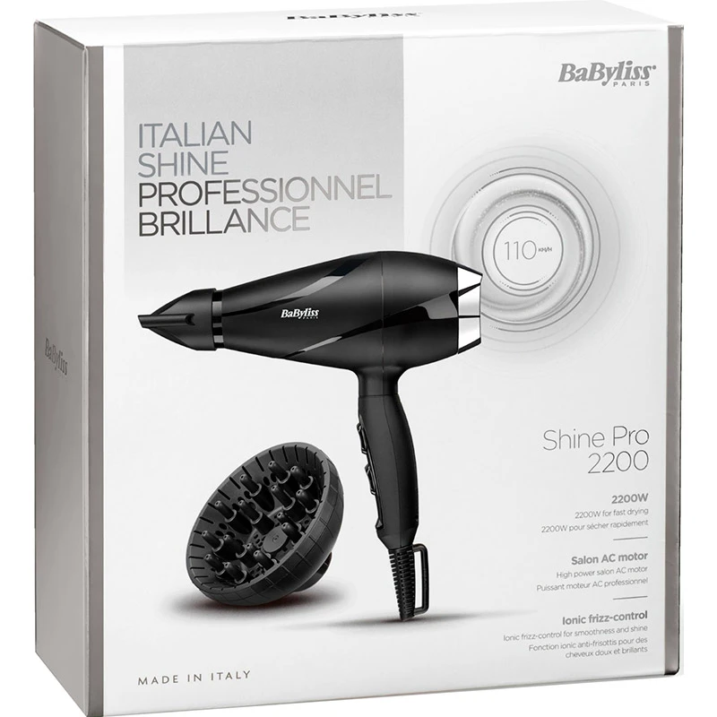 Фен Babyliss Shine Pro, 2200Вт, 2 режими, дифузор, іоніз-я, хол. обдув, чорний