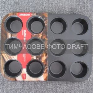 Форма для випікання мафінів Ardesto Gemini, 35х26.5х3см, 12шт, вуглецева сталь, сірий