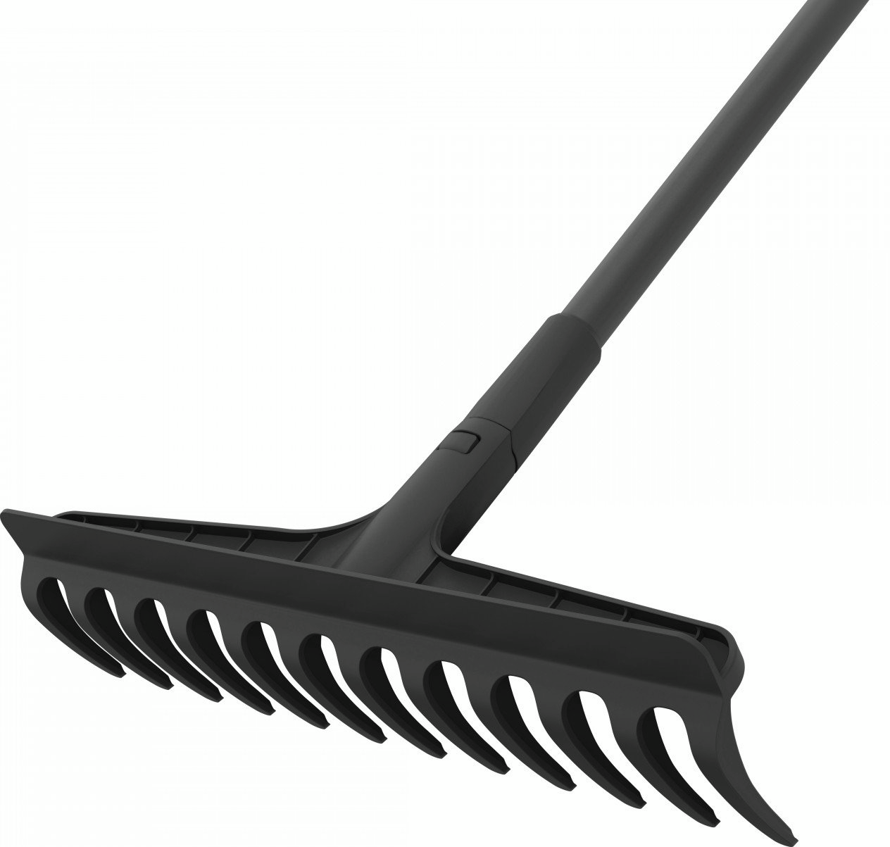 Граблі підходять для згрібання листя, трави та інших садових відходів на малих і великих площах, виконують роль скребка. Легкий та міцний вал виконаний з алюмінію. Неслизька поверхня забезпечує міцне захоплення та комфорт використання, а також захищає від випадкових пошкоджень. Універсальний адаптер дозволяє швидко замінити головки, забезпечуючи дуже надійне і стабільне з'єднання.