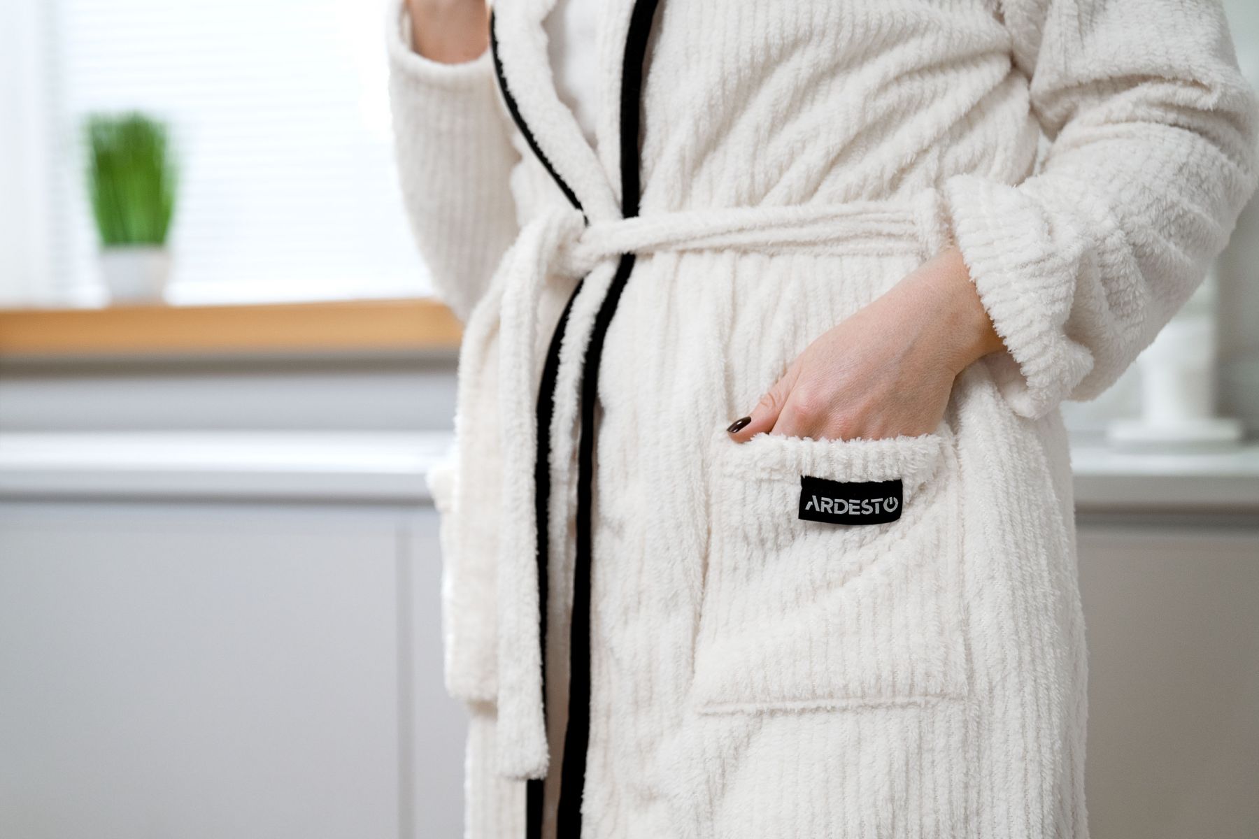 Халат жіночий ARDESTO Stripe, розмір XXL, 100% поліестер, білий