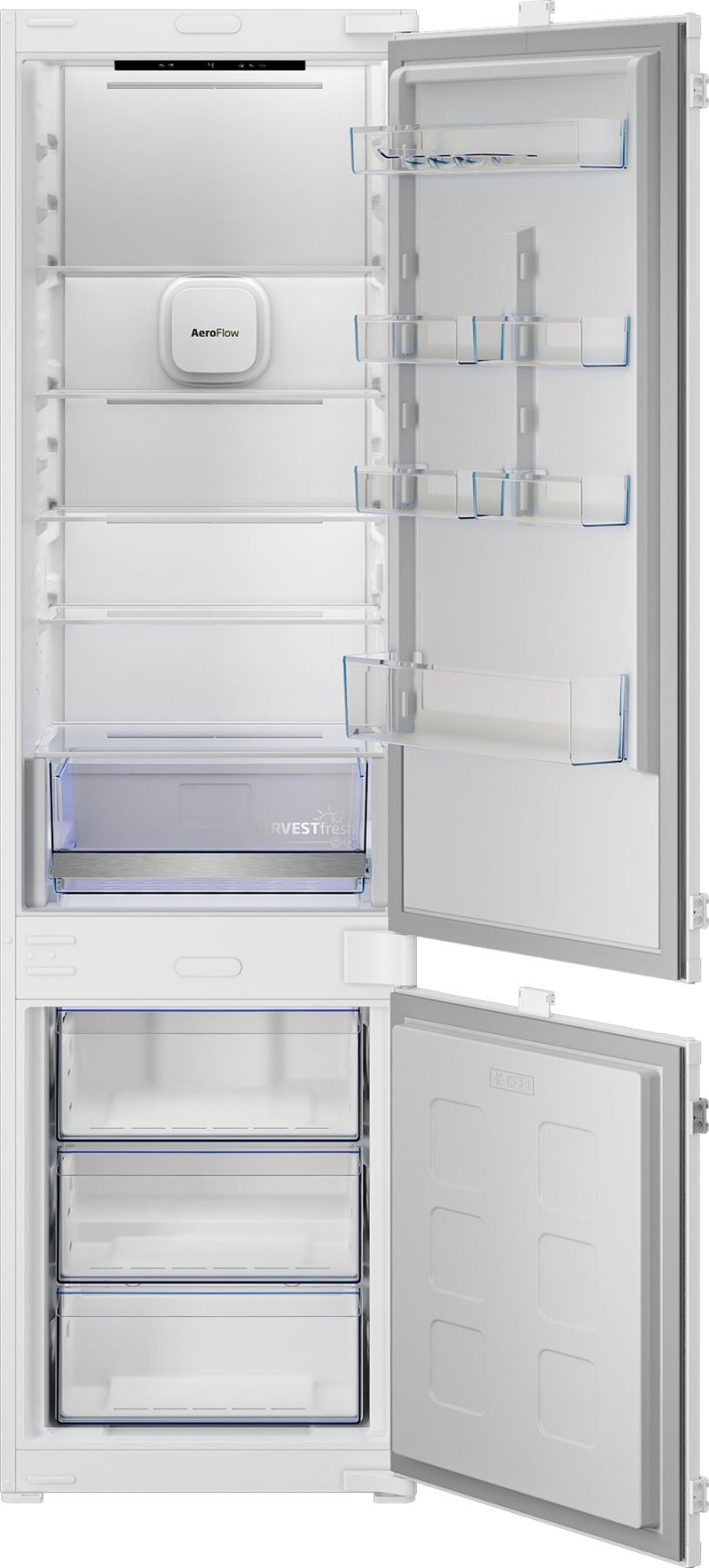Холодильник Beko вбудований з нижн. мороз., 194x54x55, xолод.відд.-224л, мороз.відд.-76л, 2дв., D, NF, HarvestFresh, білий