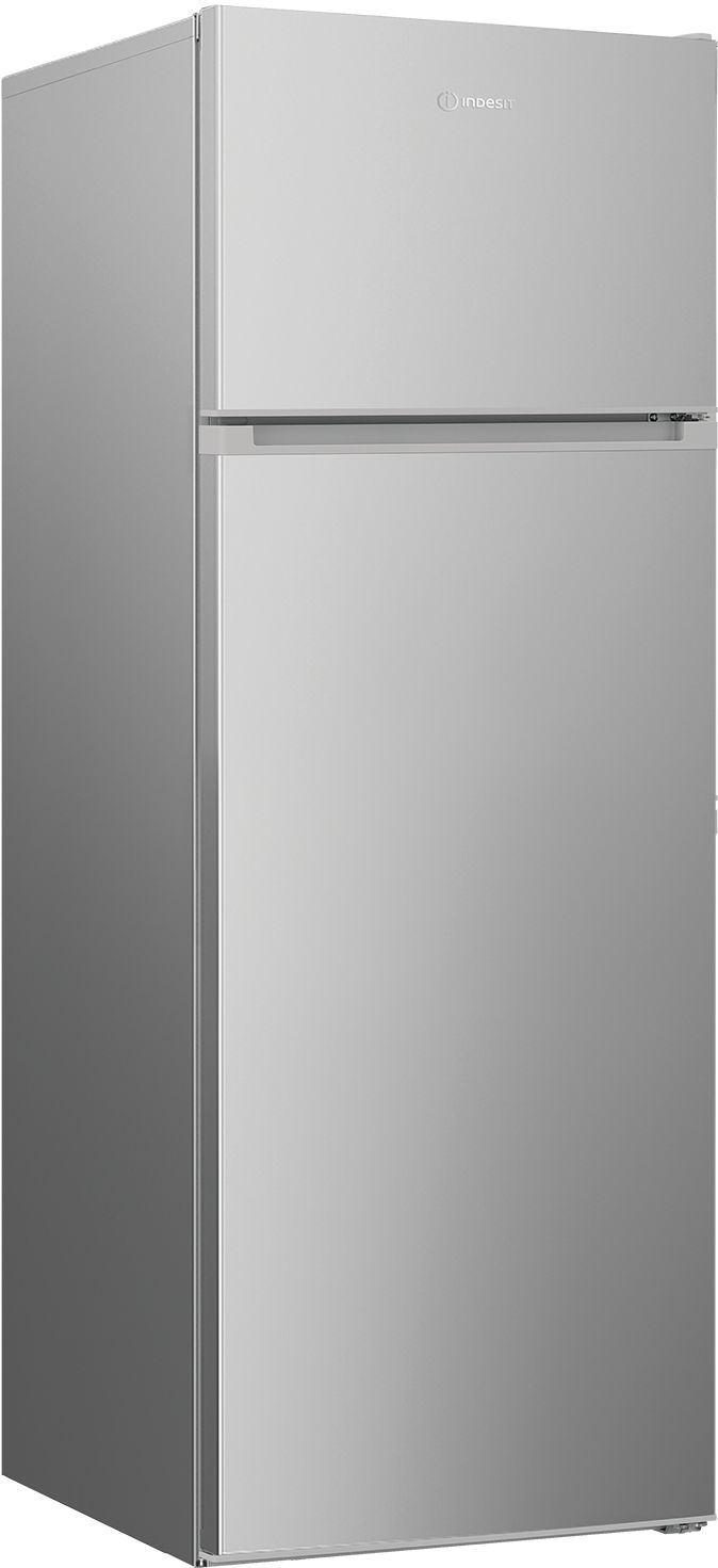 Indesit I55T1612SUA — це компактний двокамерний холодильник з верхньою морозильною камерою, який чудово підходить для невеликих кухонь. Загальний об’єм становить 250 літрів (204 л холодильне відділення та 46 л морозильне). Модель виконана в елегантному сріблястому кольорі та належить до енергоефективного класу A++.