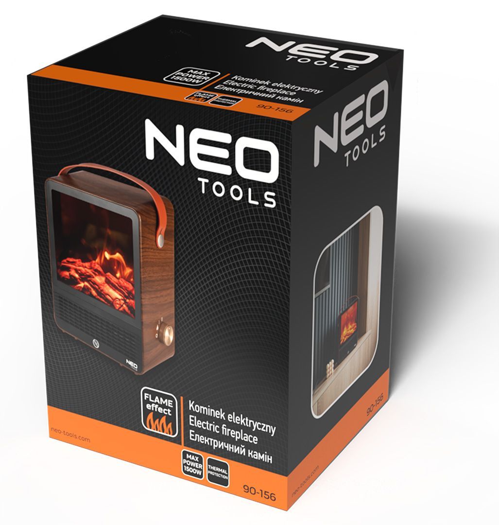 Декоративний електричний камін Neo Tools 90-156 поєднує затишок живого вогню та зручність сучасних технологій. Компактний прилад створює ефект реалістичного полум’я, додаючи інтер’єру тепла й комфорту, а також може використовуватися як додаткове джерело обігріву. Завдяки двом режимам потужності (850 Вт і 1500 Вт) користувач може обирати інтенсивність нагріву залежно від потреби.