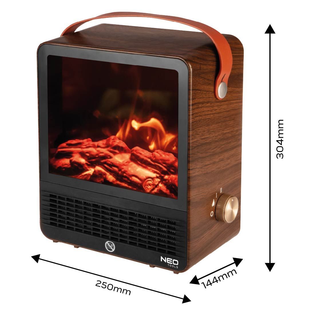 Камін електричний, декоративний Neo Tools, 850/1500Вт, 15–20м2, регулятор, 25х14.4х30.4см, дерево