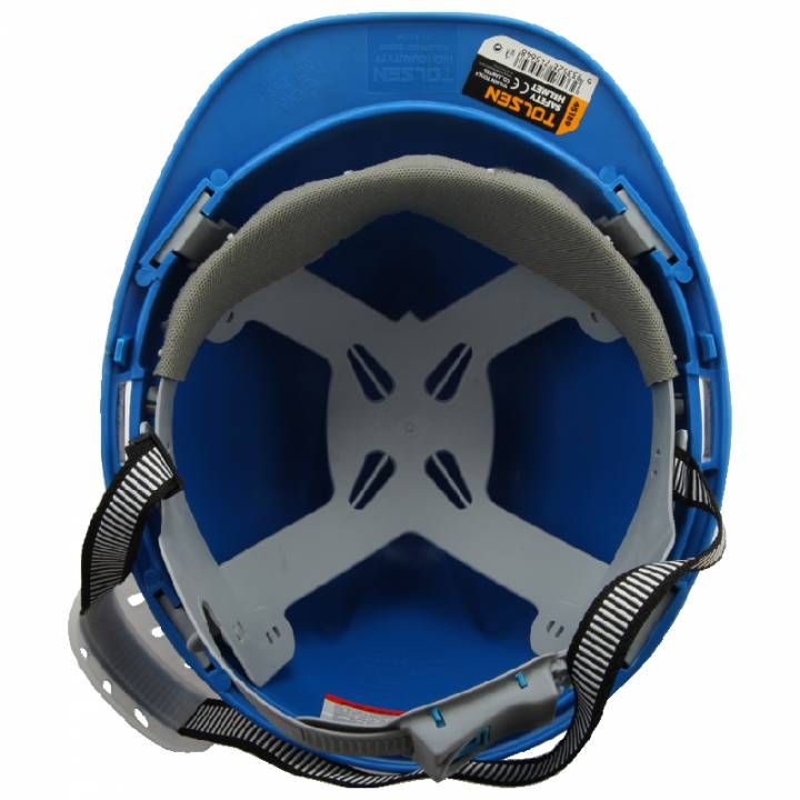 Захисна каска Tolsen забезпечує надійний захист голови під час виконання будівельно-монтажних, промислових або складських робіт. Виготовлена з ударостійкого пластику поліпропілену РР, має регульовану посадку та сумісна з додатковими засобами захисту, такими як щитки та навушники.