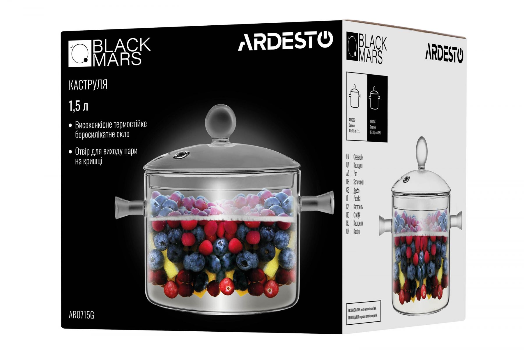 Каструля з кришкою ARDESTO Black Mars 1.5л, боросилікатне скло