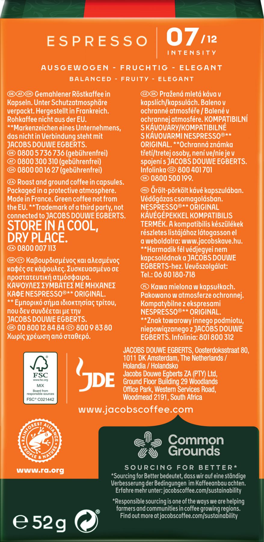 Кава Jacobs капсули, Espresso Classico, купаж арабіка/робуста, 10шт, Nespresso