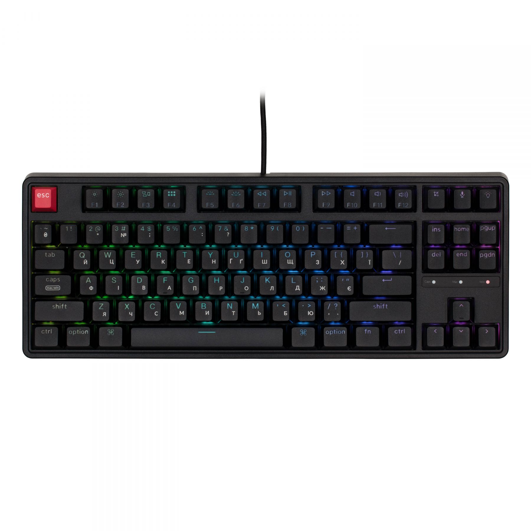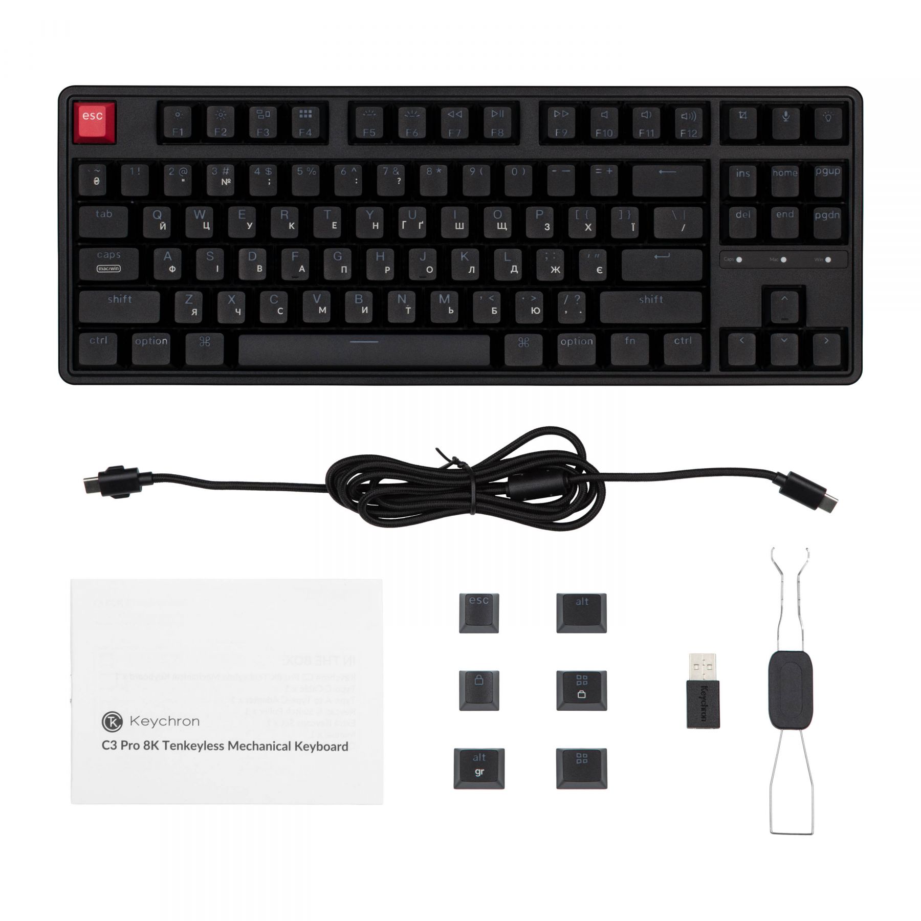 Клавіатура механічна Keychron C3 Pro V2 87Key, K pro Red, USB-A, QMK, Hot-swap, 8K, EN/UKR, RGB, чорний