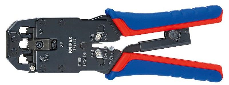 Кліщі обтискні KNIPEX Western 97-51-12 призначені для роботи з модульними конекторами RJ10, RJ11/12 та RJ45. Інструмент використовується під час монтажу телефонних і мережевих кабелів. Конструкція забезпечує стабільний результат обтиску. Підтримка кількох стандартів дозволяє виконувати різні типи з’єднань в одному робочому процесі.