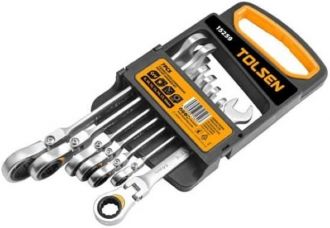 Ключі гайкові Tolsen, набір 7 шт, комбіновані, шарнірні, храповий механізм, 8-19мм, CrV