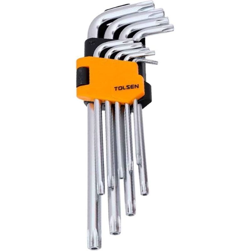 Ключі шестигранні Tolsen, набір 9шт, подовжені, довгі, кулястий наконечник, Тorx 10-50, CrV