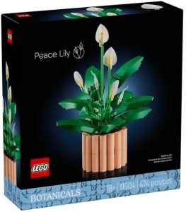 LEGO Botanicals Спатифілум (11504) — набір для дорослих від 18 років, що дозволяє створити реалістичний спатифілум (жіноче щастя) на трьох стадіях життя: 2 згорнуті бутони, 2 частково розкриті квітки та 2 квітки в повному розквіті. Використовуються цікаві техніки: перефарбована морква імітує суцвіття напіврозквітлої лілії, а шматочок попкорну — повністю розквітлої. Рослина «висаджена» у персиковий вазон і стає стильним вічним декором для будь-якої кімнати. Чудовий подарунок на день народження, новосілля, День матері чи День закоханих для любителів природи та творчого відпочинку. Містить 474 деталі.