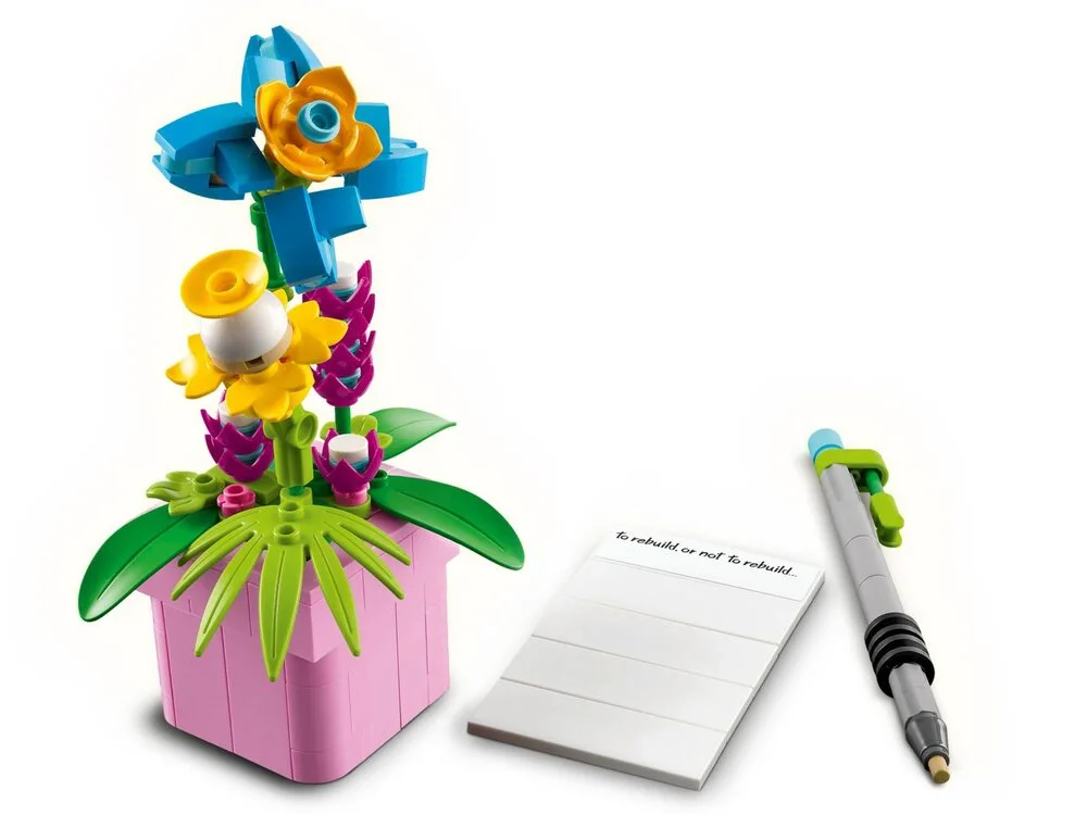 Конструктор LEGO Creator «Друкарська машинка з квітами» 31169 — це набір із серії 3-в-1, що дозволяє зібрати одну з трьох різних моделей. Основна з них — вінтажна друкарська машинка з рухливою клавіатурою, декоративними квітами та «аркушем паперу» з кубиків. Альтернативні збірки включають клавітару на підставці з квітами і горщик для квітів із блокнотом та ручкою. Під час складання розвиваються просторове мислення та творчі навички.