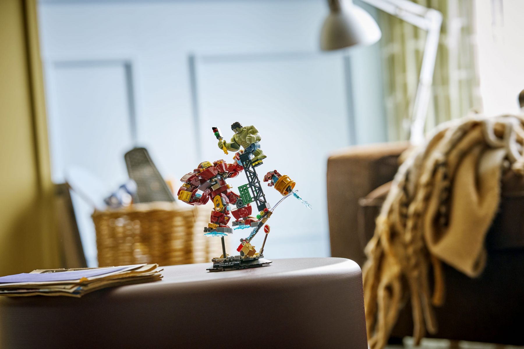Оживіть події фільму від Marvel Studios «Месники: Ера Альтрона» з набором для конструювання LEGO® Marvel Легендарна битва: Халкбастер vs. Халк (76343) для хлопчиків і дівчаток віком від 9 років. Цей дивовижний набір, що містить мініфігурки Залізної Людини й Халка, а також культову броню «Халкбастер», відкриває дітям безмежні можливості для творчих сюжетних ігор та креативного демонстрування. Залізна Людина бореться з Халком у своїй броні «Халкбастер» на тлі вулиці, заваленої уламками, напівзруйнованих сталевих конструкцій і світлофора, який Халк може використовувати як зброю.
