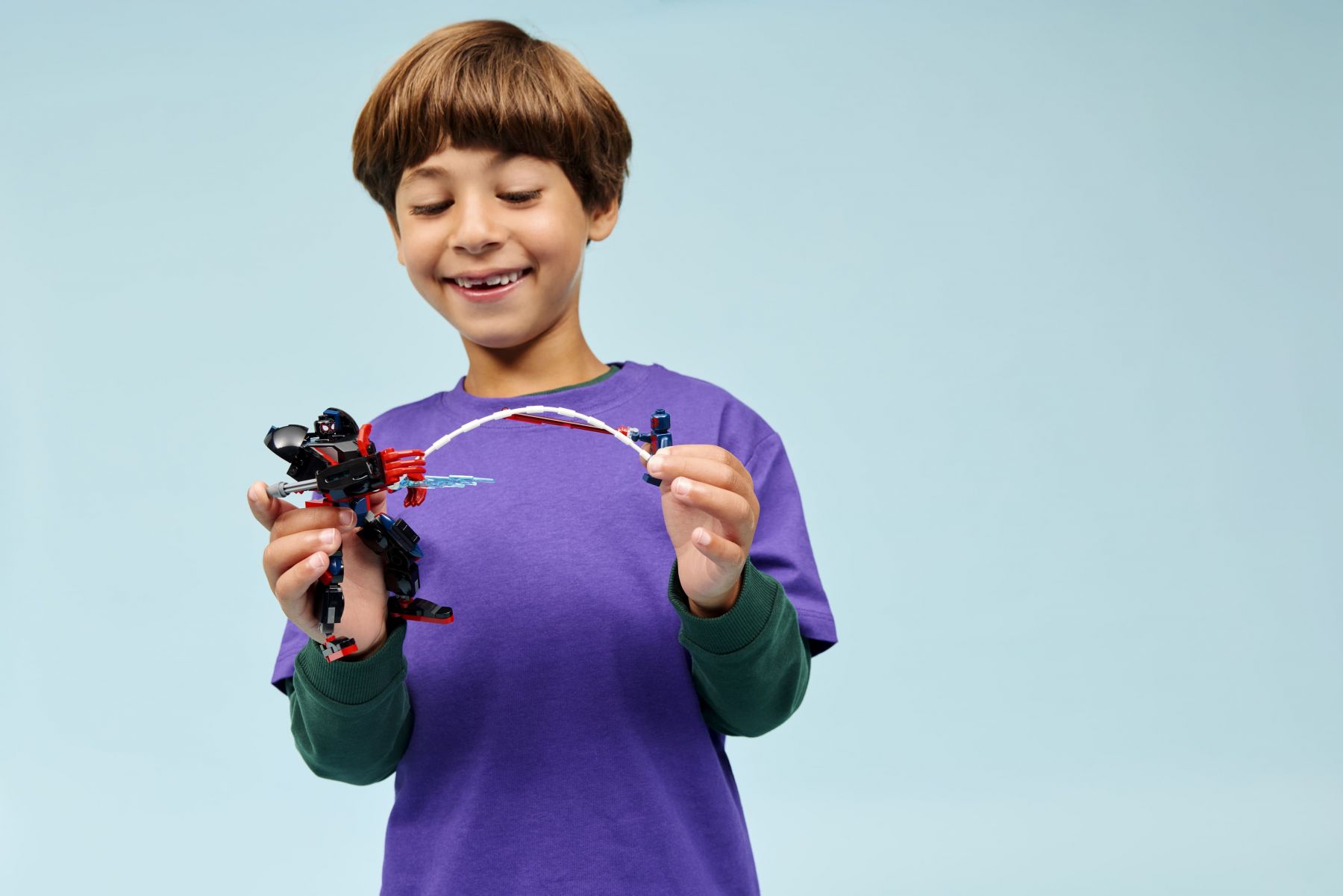 Оживіть грандіозні битви з фільмів Marvel за допомогою набору «Робот Майлза Моралеза vs. Людина-павук 2099» (76337) — супергеройського конструктора для хлопчиків і дівчаток віком від 6 років. Ця дитяча іграшка для будування та гри спонукатиме до безлічі сюжетних ігор завдяки великому шарнірному роботу, а також мініфігуркам Людини-павука й Майлза Моралеза. Цей набір LEGO® ǀ Marvel передає сцени з фільму Marvel Studios «Людина-павук: Крізь Всесвіт» до рук дітей: рухомий робот буквально створенийдля динамічних ігор. На руках робота є знімний 3-шиповий шутер, павутина й потужні павутинні снаряди з лезами, щоб битва тривала без упину.