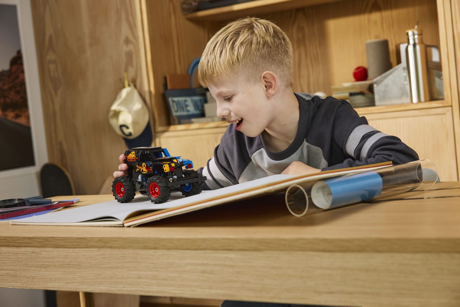 Розпаліть епічну гру з цією крутою вантажівкою Monster Jam™ з інерційним двигуном для хлопчиків і дівчаток віком від 7 років. Використовуйте інерційний механізм, щоб запустити іграшкову вантажівку LEGO® Technic Monster Jam™ Grave Digger™ Вогонь і лід (42219) уперед до пригод. Готуйтеся до епічних ігор, адже юні любителі вантажівок-монстрів відтворюють свої улюблені трюки та стрибки з арени Monster Jam. Зверніть увагу на привабливі деталі дизайну, натхнені справжньою вантажівкою Grave Digger Fire and Ice, з вогнем і полум'ям з одного боку і льодовим дизайном з іншого.