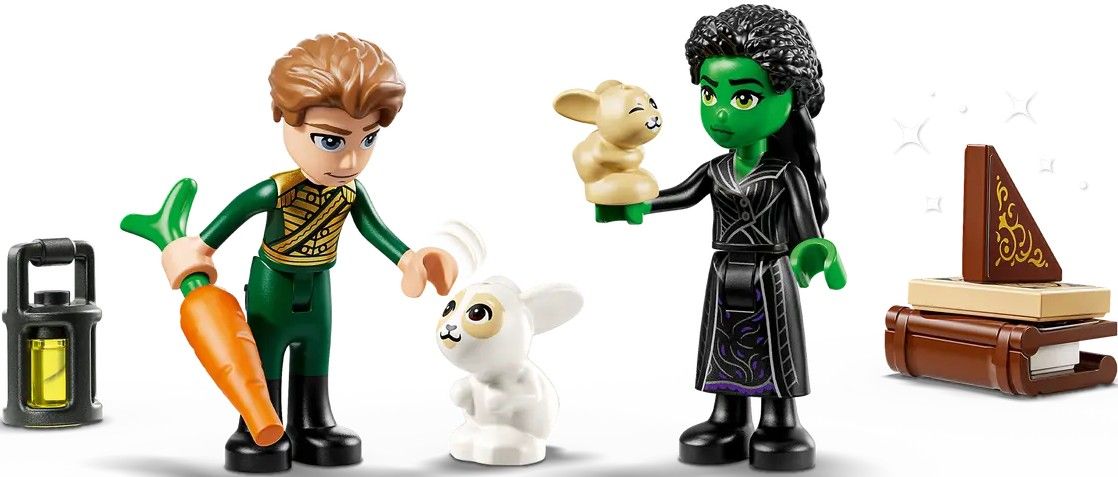 Набір LEGO Wicked «Відступ Ельфаби» відтворює чарівну схованку героїні у лісовій гущавині, розкриваючи атмосферу знайомої сцени з фільму. Конструктор містить 228 елементів для побудови затишного притулку з аксесуарами та деталями. У комплект входять мініляльки Ельфаби та Фієро, а також фігурки тварин і предмети побуту. Зібрана модель слугує ігровою декорацією, що стимулює уяву та рольову гру.
