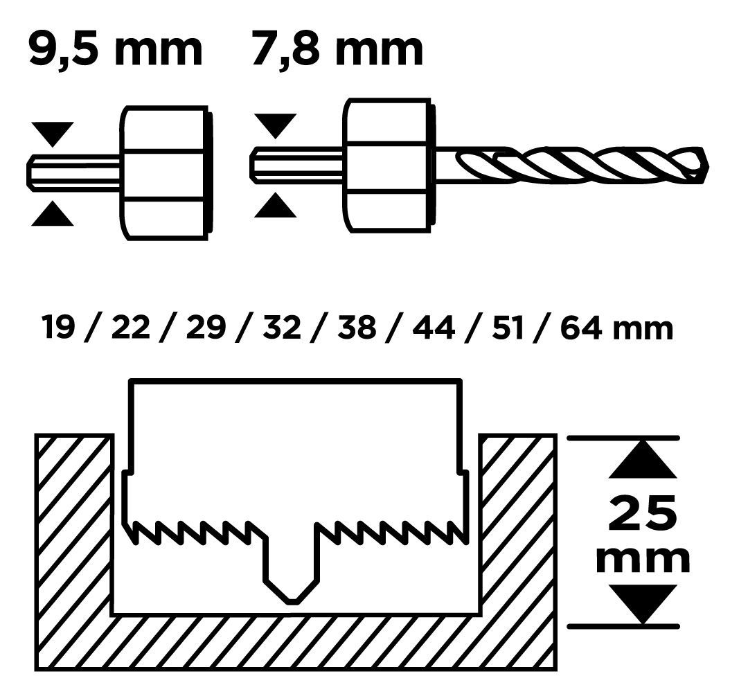 Коронки по дереву GRAPHITE 19, 22,29,32,38,44,51,64мм, 2 адаптери, кейс 12шт