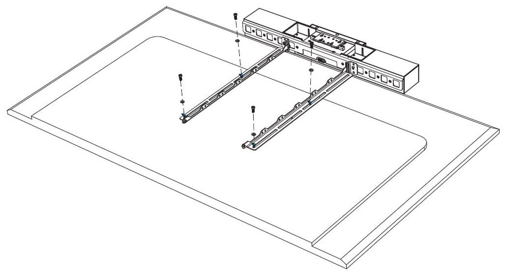 Комплект VESA монтажу Poly Studio дозволяє встановити відеобар Poly Studio над або під дисплеєм/телевізором. Він кріпиться до дисплеїв із кріпленнями VESA від 100 x 100 до 600 x 600 мм, забезпечуючи універсальну та надійну фіксацію.