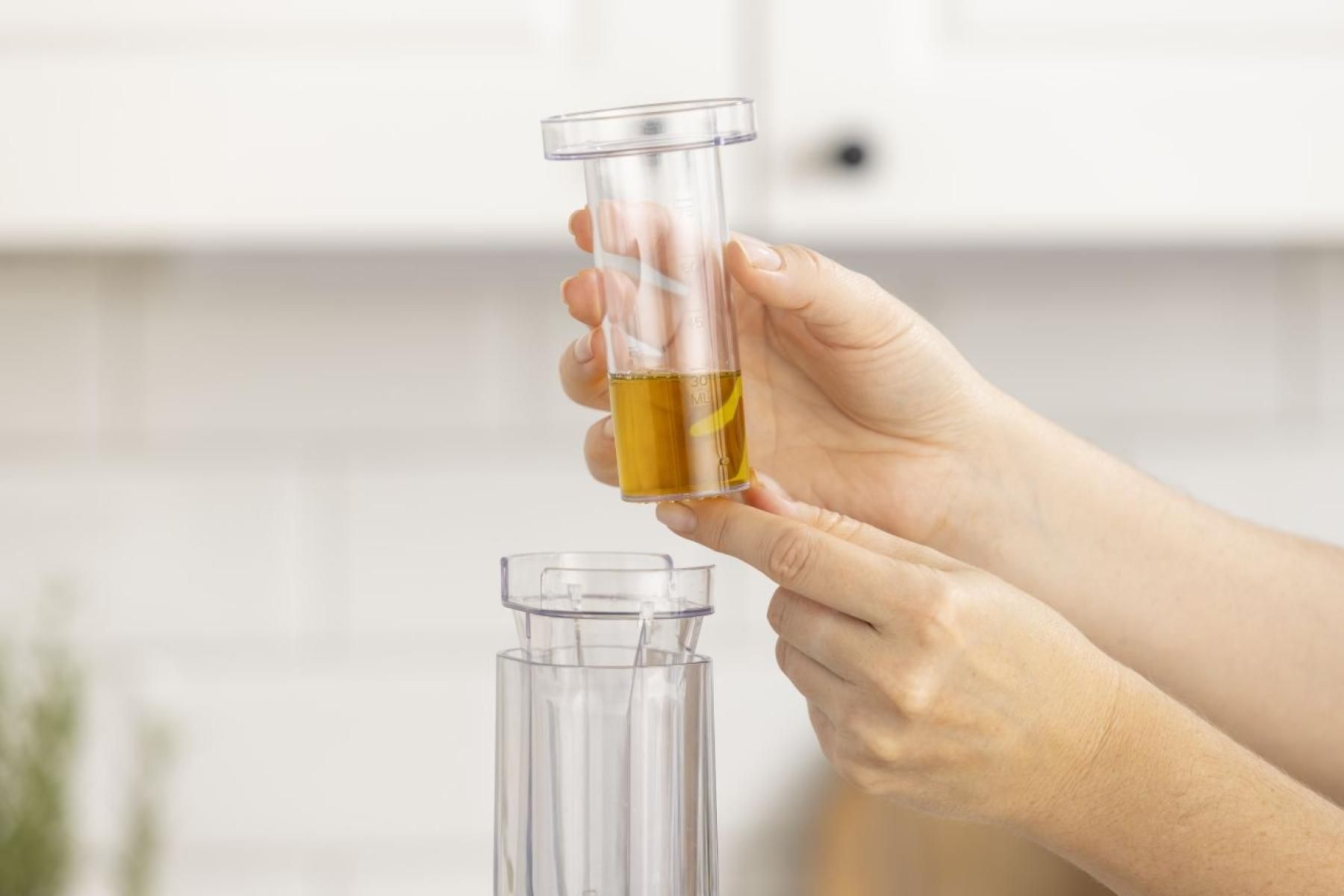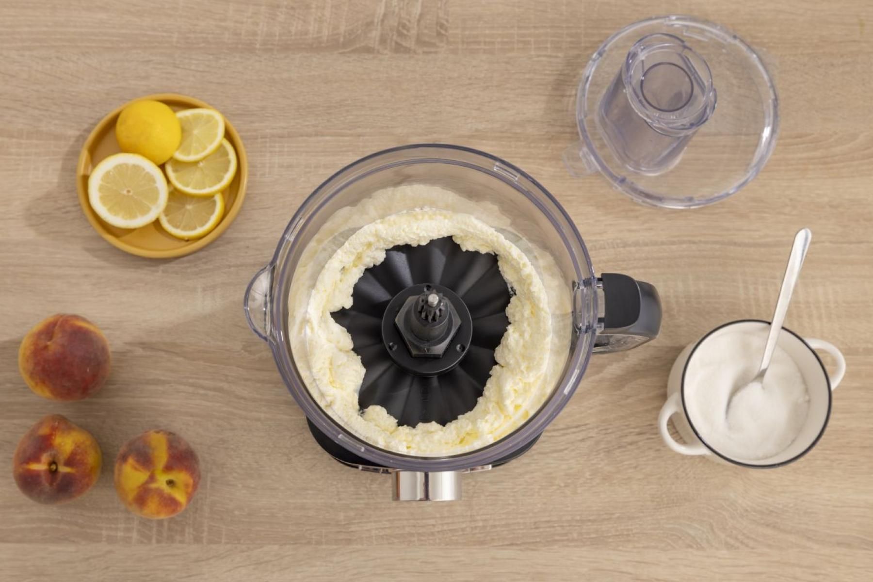 Особливості:Дисплей, захисний вимикач, Подвійний ніж подрібнювача, підсвічування ручки управління, ручка регулювання швидкості, двигун змінного струму, мірні позначки для точного дозування, 12 автопрограм, подвійна система блокування (чаша/кришка), технологія Fusion Mode – інноваційний перехід між режимами