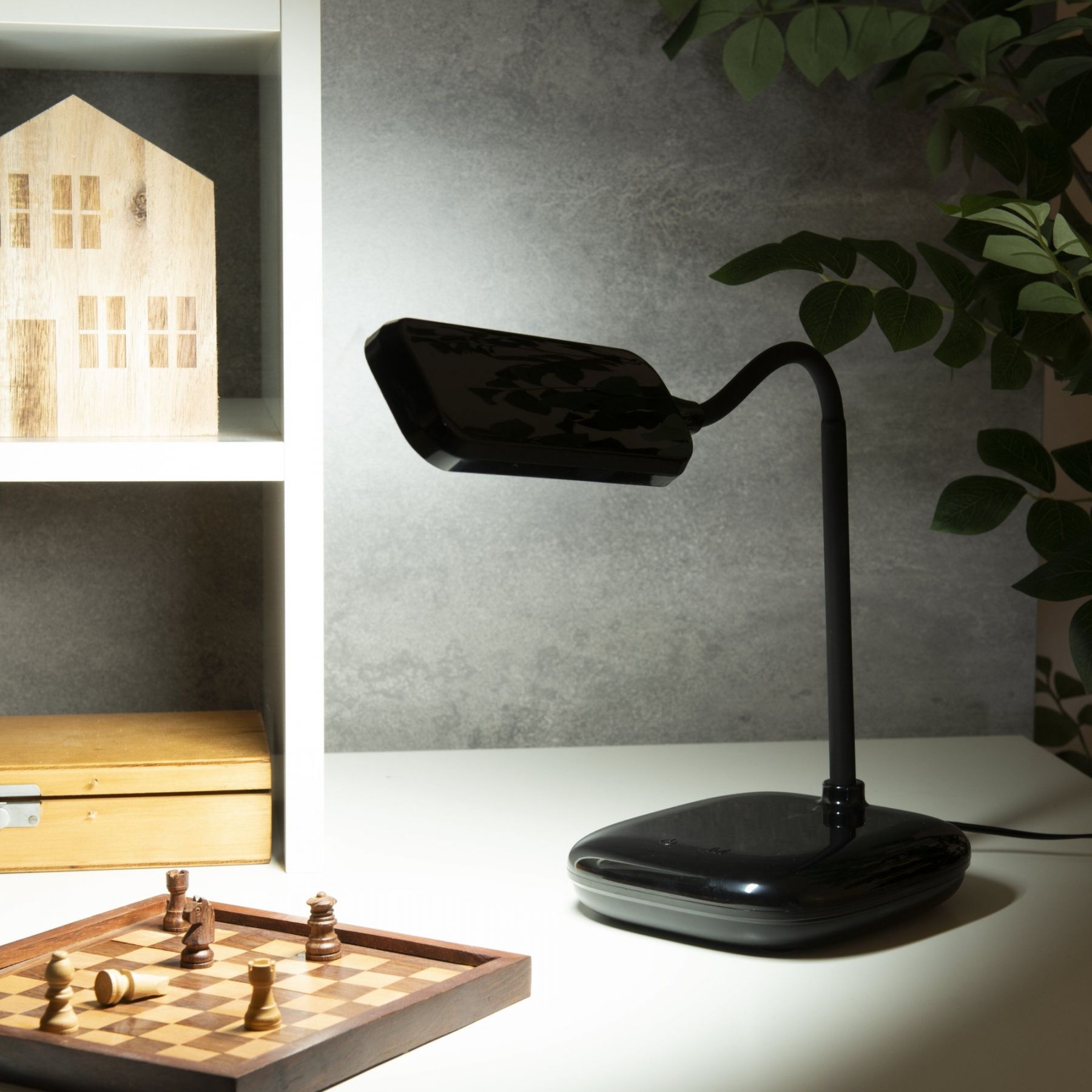 Настільна лампа OSRAM Panan DISK SQ 12 Вт — світлодіодний прилад з трирежимною зміною колірної температури 3000/4000/6500 К та функцією димування. Формує світловий потік 560–600 лм, має сучасний дизайн, гнучке регулювання нахилу освітлювальної панелі та комплектується зовнішнім блоком живлення.