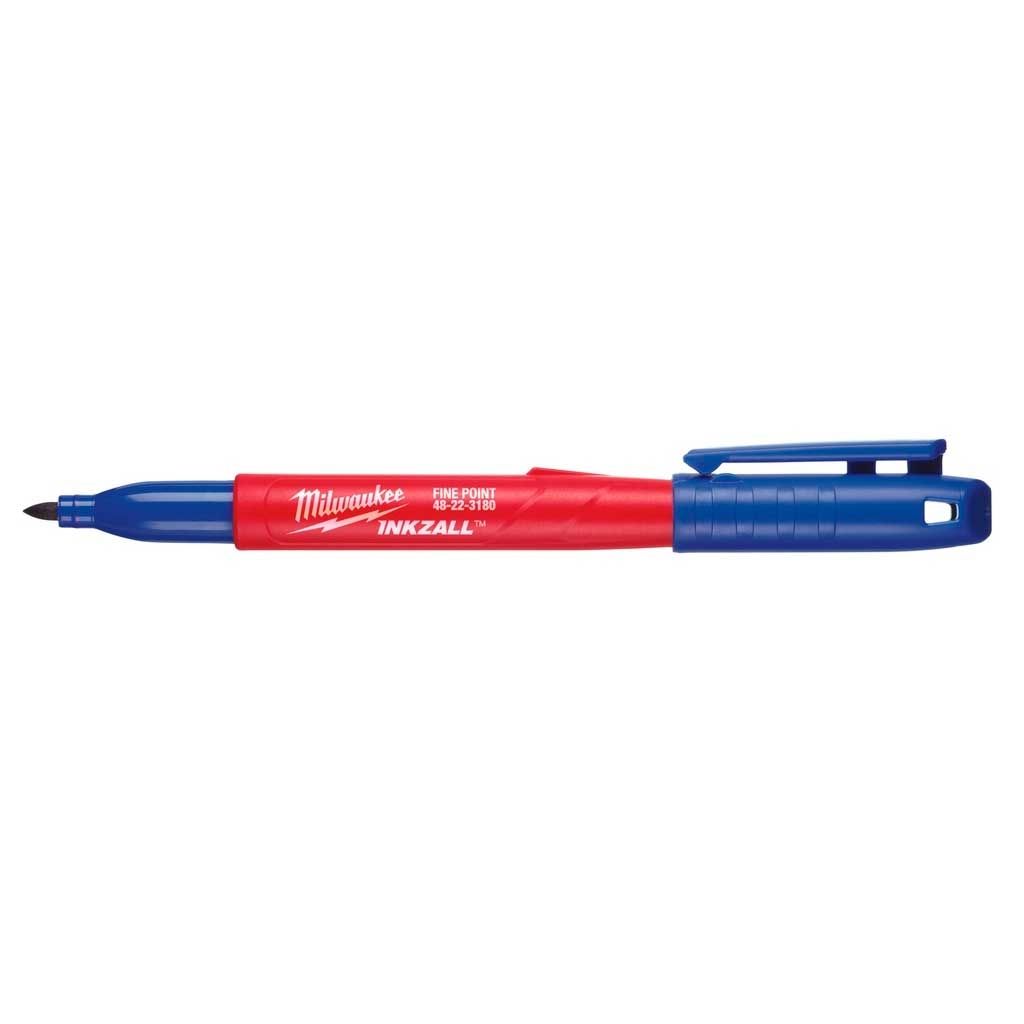 Маркер Milwaukee INKZALL з тонким синім стержнем розроблений для професіоналів, яким потрібен надійний інструмент для маркування в умовах будівельного майданчика. Стійкий до засмічення наконечник - маркер пише на запилених, вологих та маслянистих поверхнях без втрати якості лінії.