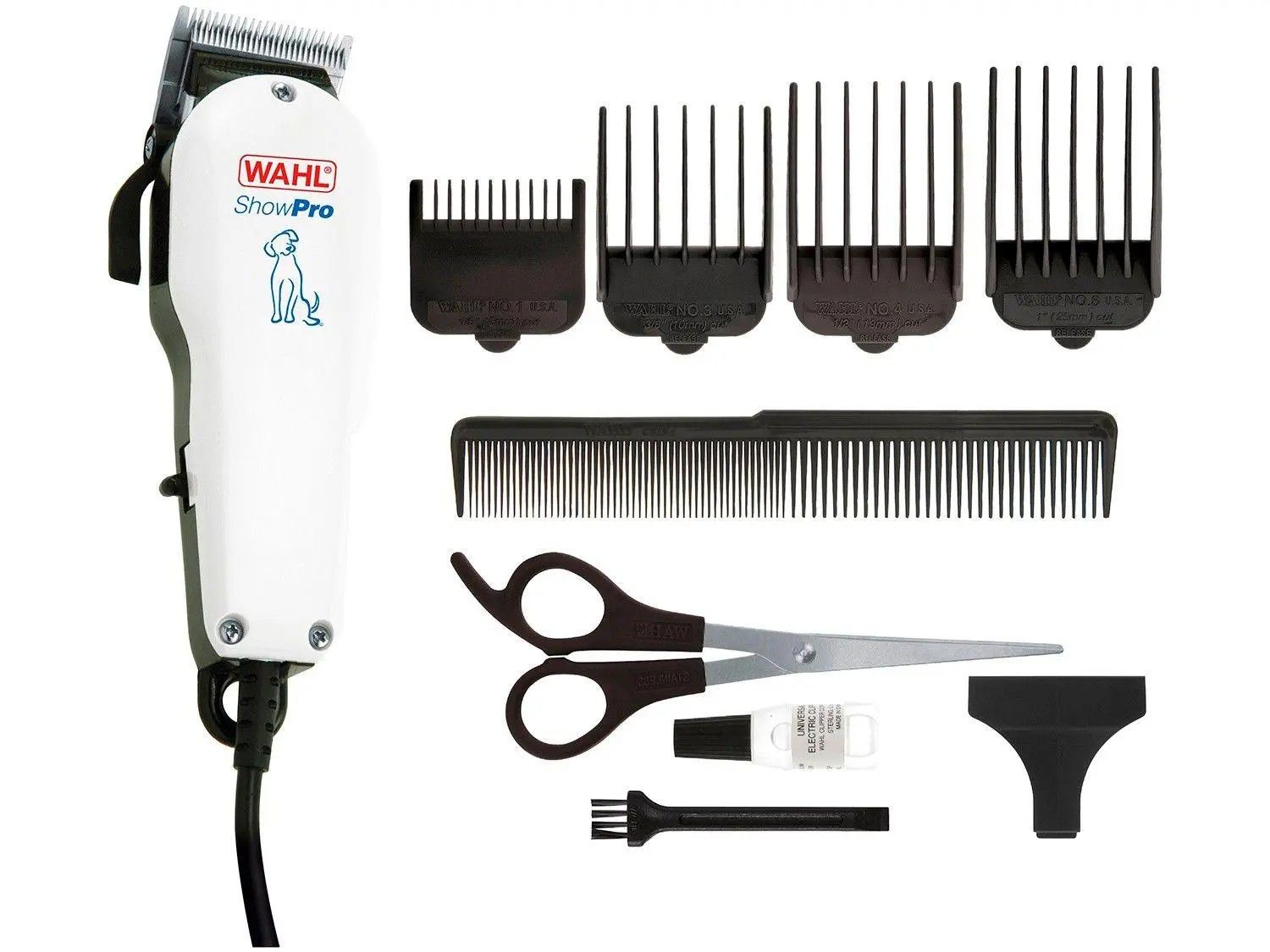 Машинка для стрижки тварин WAHL Show Pro, від мережі, вібраційний мотор, насадок-4, кейс,ножиці, гребінець в компл, сталь, білий