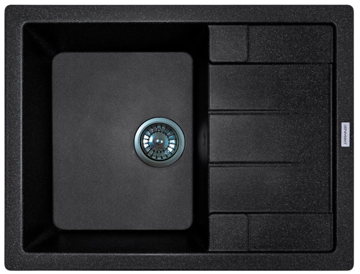 Мийка кухонна Adamant Anila, штучний камінь, прямокут., з крилом, 645х495х200мм, чаша - 1, врізна, чорний