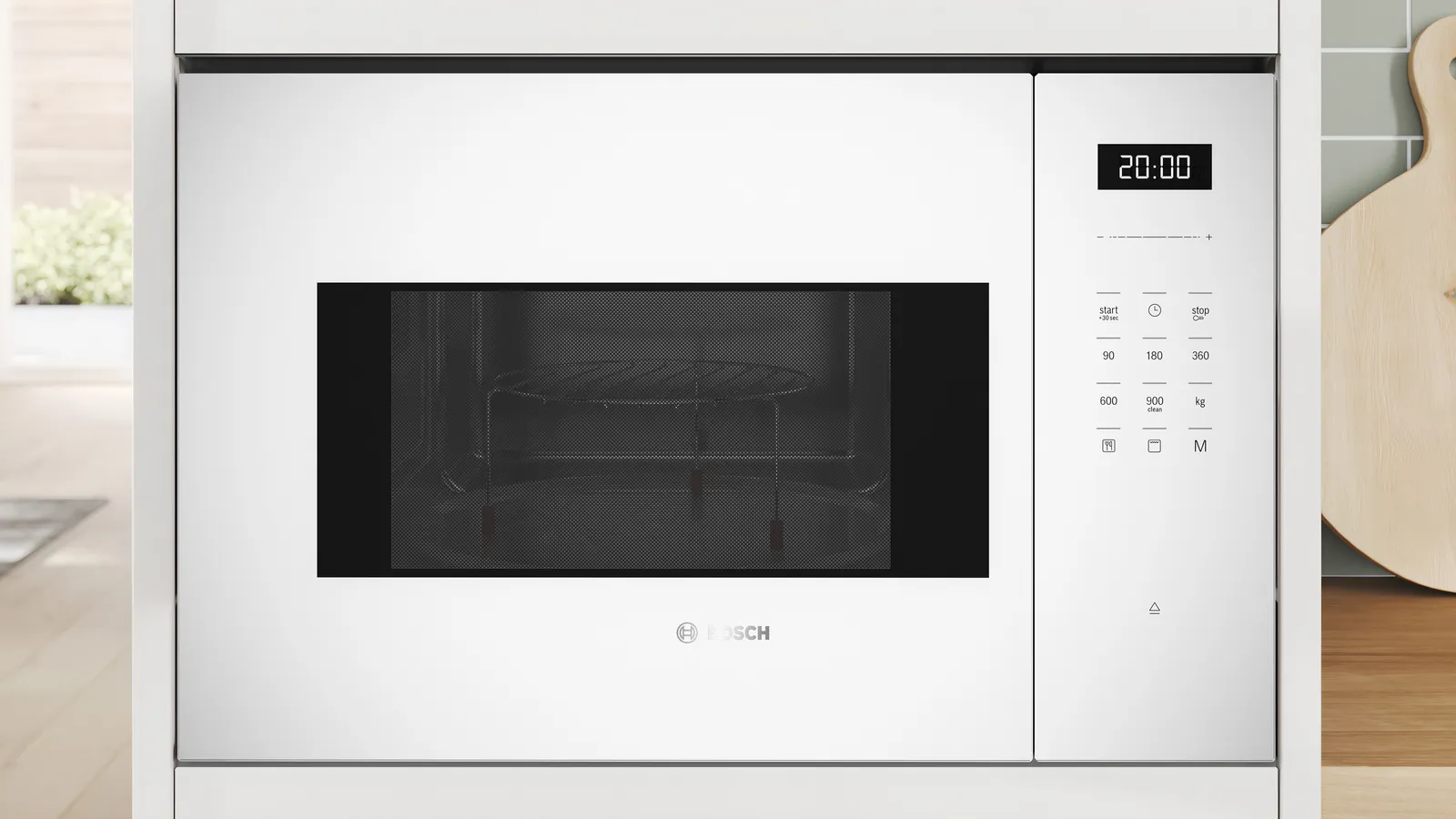 Мікрохвильова піч Bosch вбудована, 25л, електр. керув., 900Вт, гриль, дисплей, білий