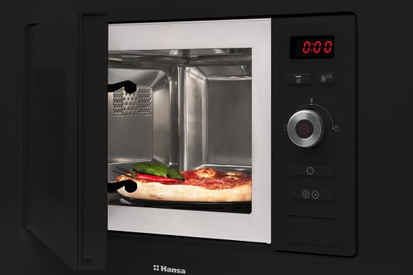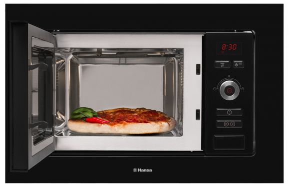 Мікрохвильова піч Hansa вбудовувана, 20л, електр.управл., 800Вт, гриль, дисплей, відкр.кнопкою, чорний