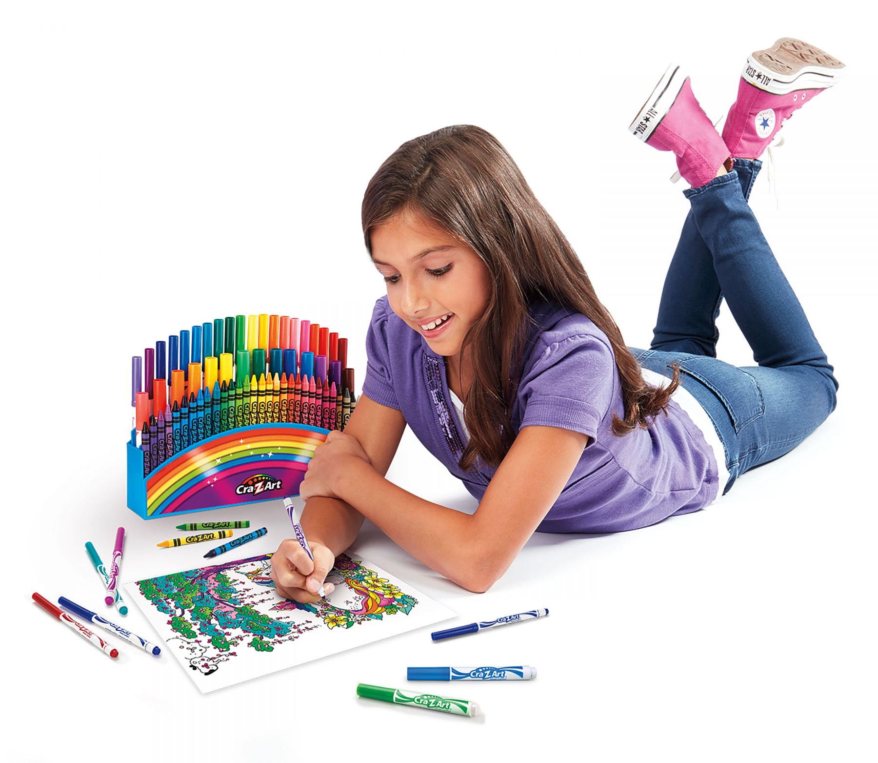 Набір для творчості Cra-Z-Art у кейсі на 64 предмети використовується для малювання та розфарбовування. Набір містить воскові крейди та маркери з різними типами наконечників для створення деталей і кольорових заливок. Комплект розміщений у пластиковому кейсі для зручного зберігання та транспортування. Такий формат набору дозволяє використовувати художні інструменти під час творчих занять удома або в дорозі.