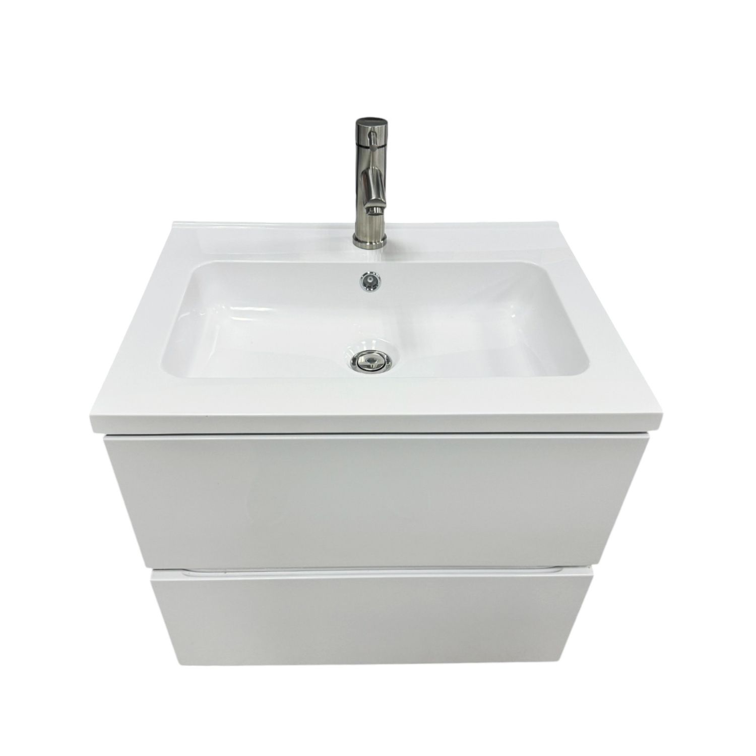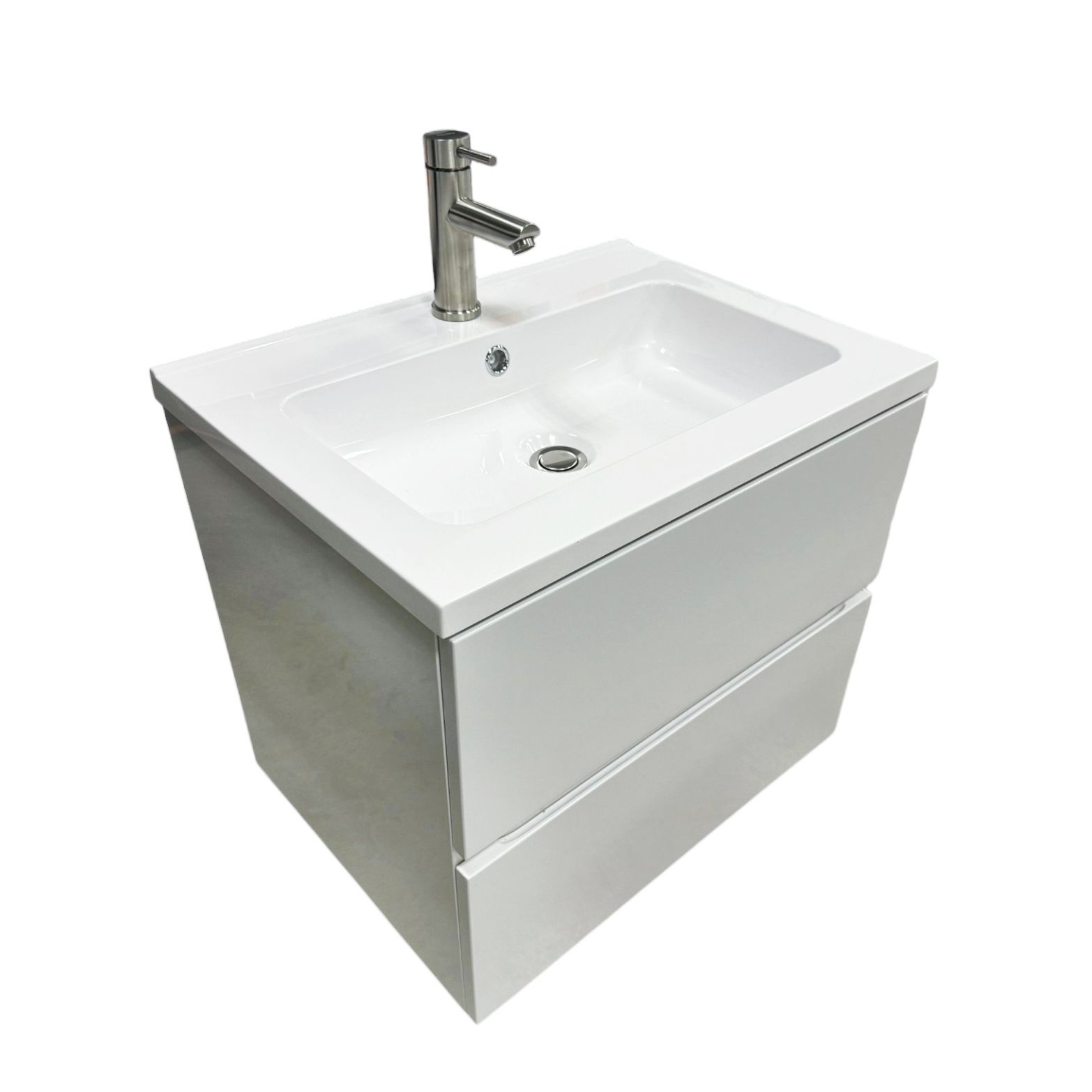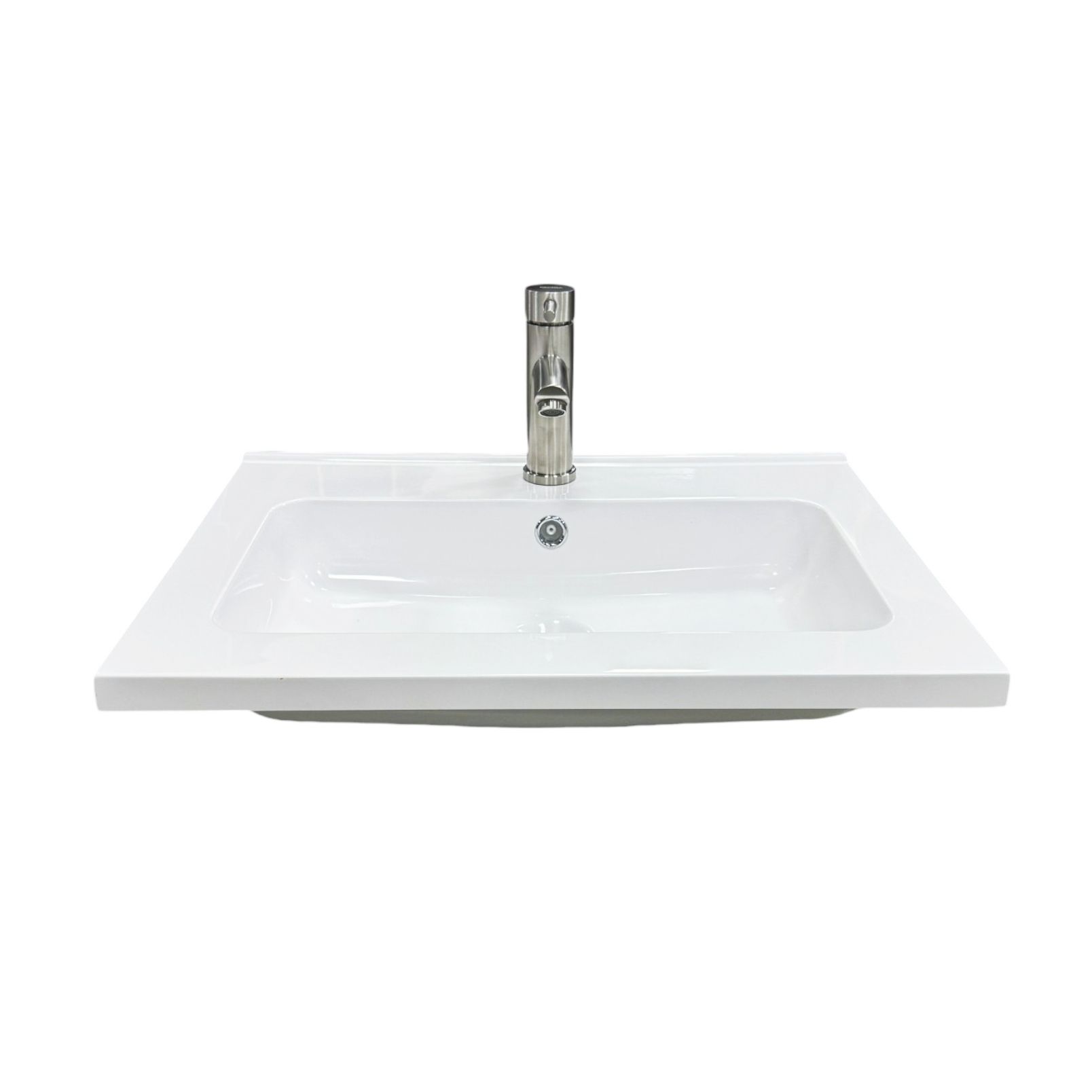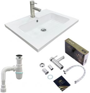 Набір для ванної кімнати, раковина, умивальник Adamant FLATE 60, штучний камінь, прямокут., з сифоном Click-Clack + змішувач