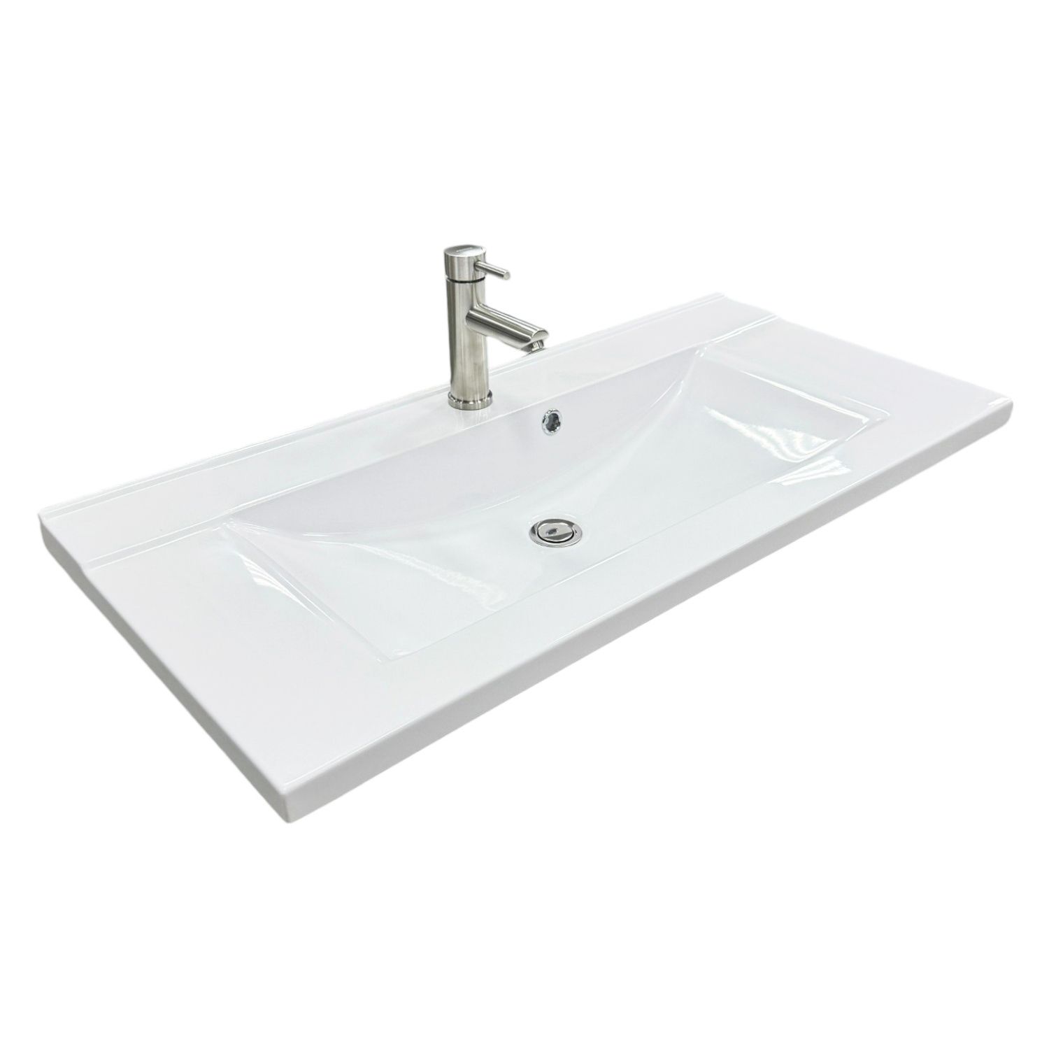 Набір для ванної кімнати, раковина, умивальник Adamant QUANTO 100, штучний камінь, прямокут., з сифоном Click-Clack + змішувач