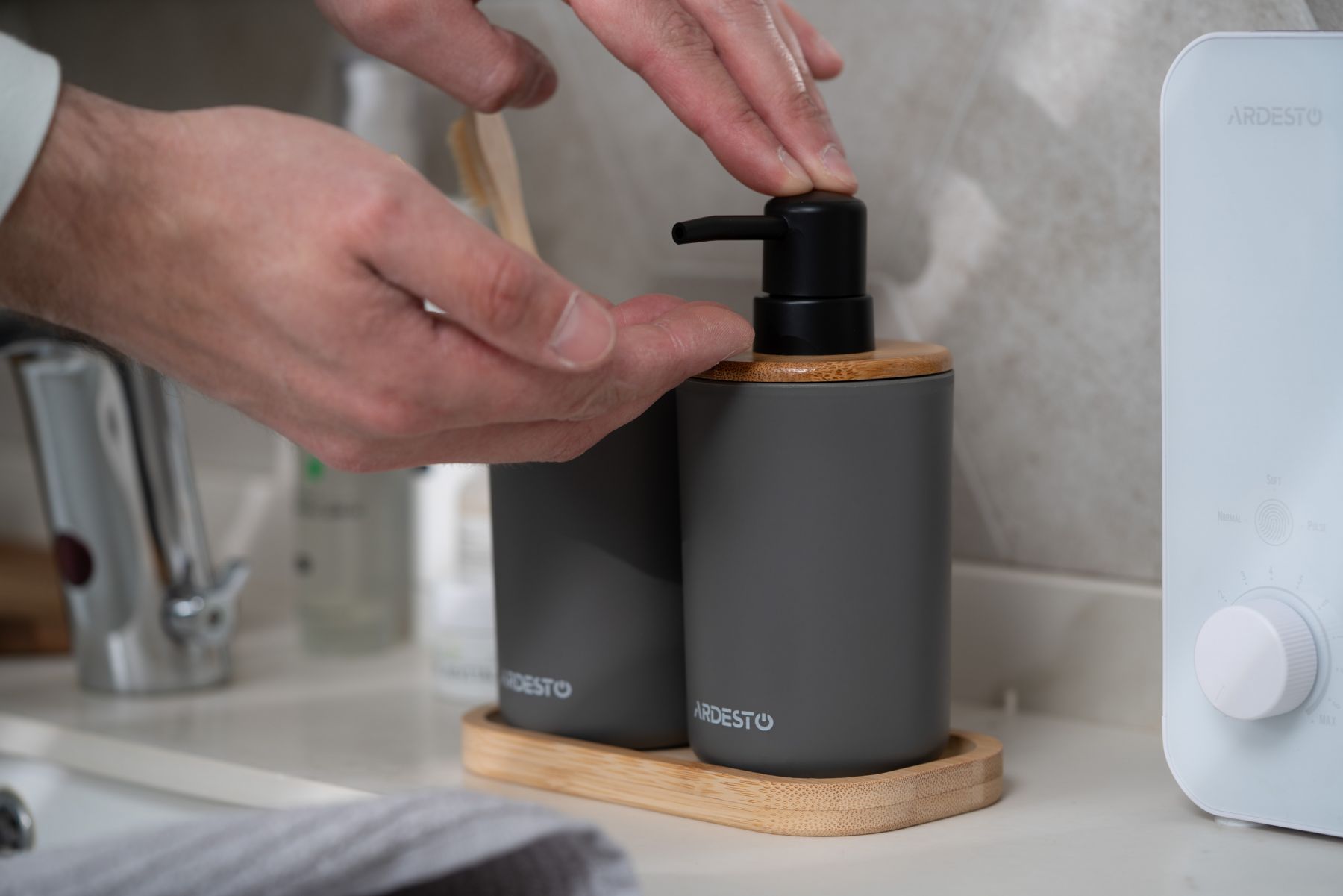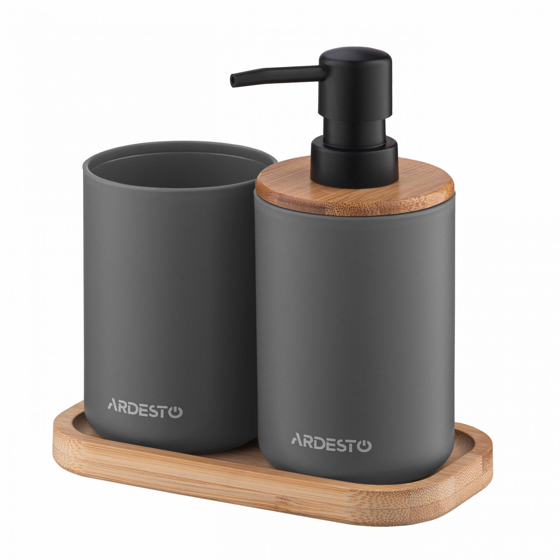 Набір для ванної кмінати Ardesto Minimalism 360мл, 3 предмети, поліпропілен, бамбук, сірий темний