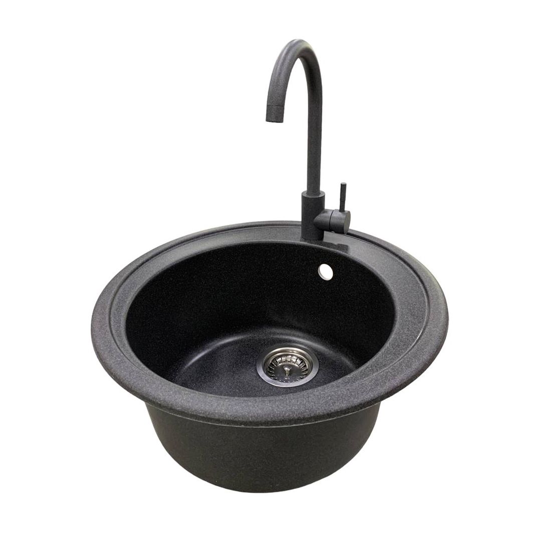 Набір кухонна Adamant Sun, штучний камінь, кругла, без крила, 510x200мм, чаша - 1, врізна, графіт + змішувач