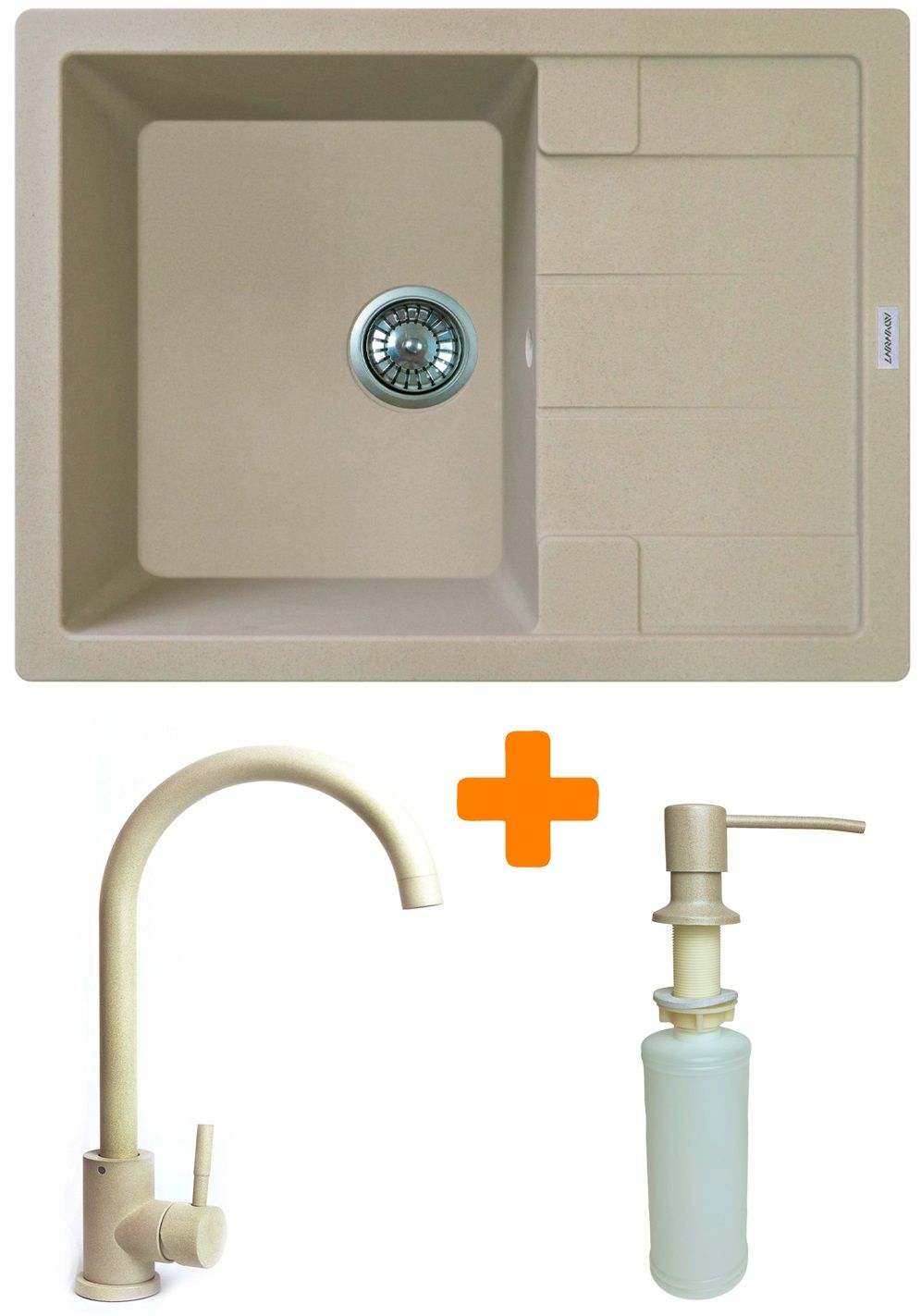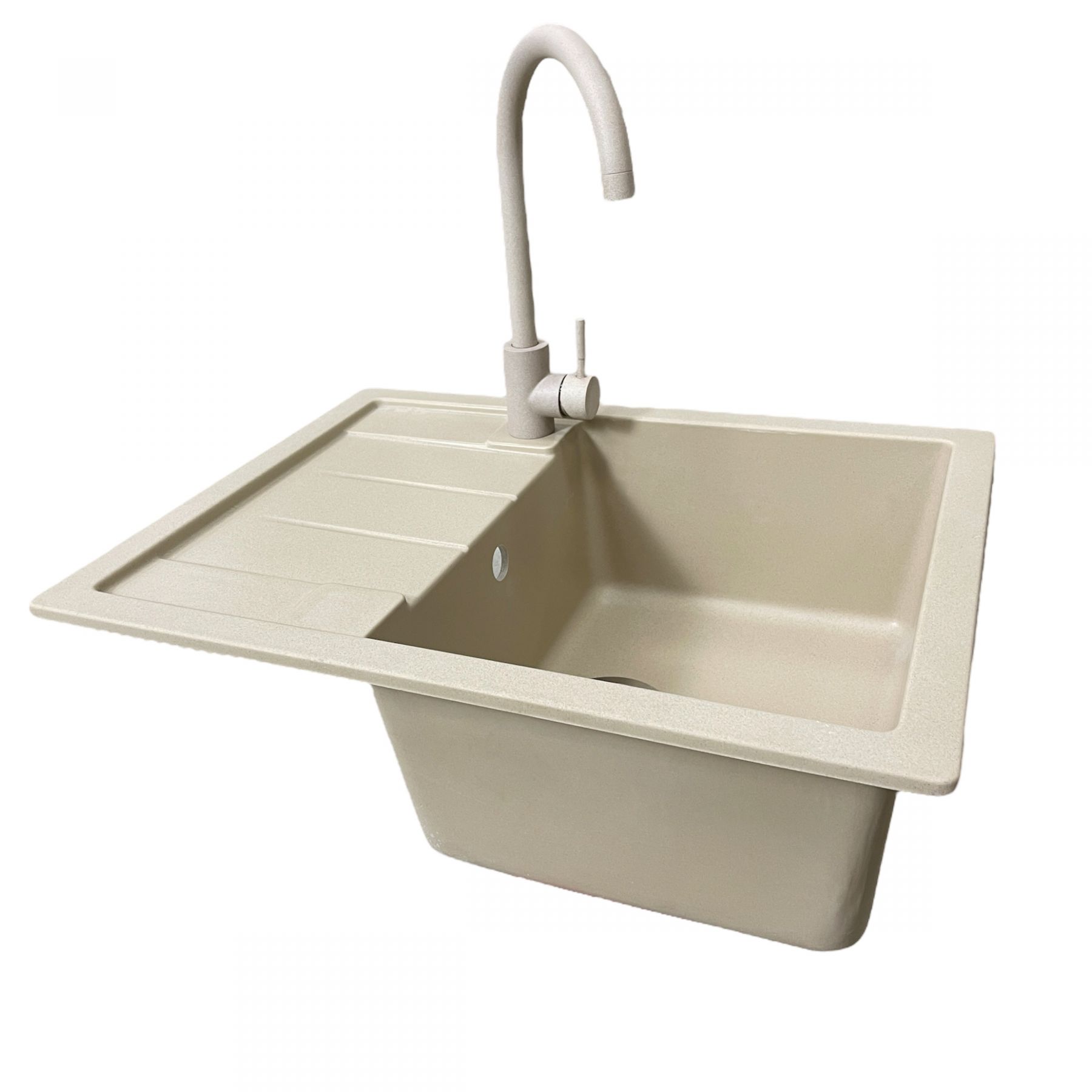 Набір кухонний Adamant Anila, штучний камінь, прямокут., з крилом, 645х495х200мм, чаша - 1, врізна, Сахара + змішувач та дозатор