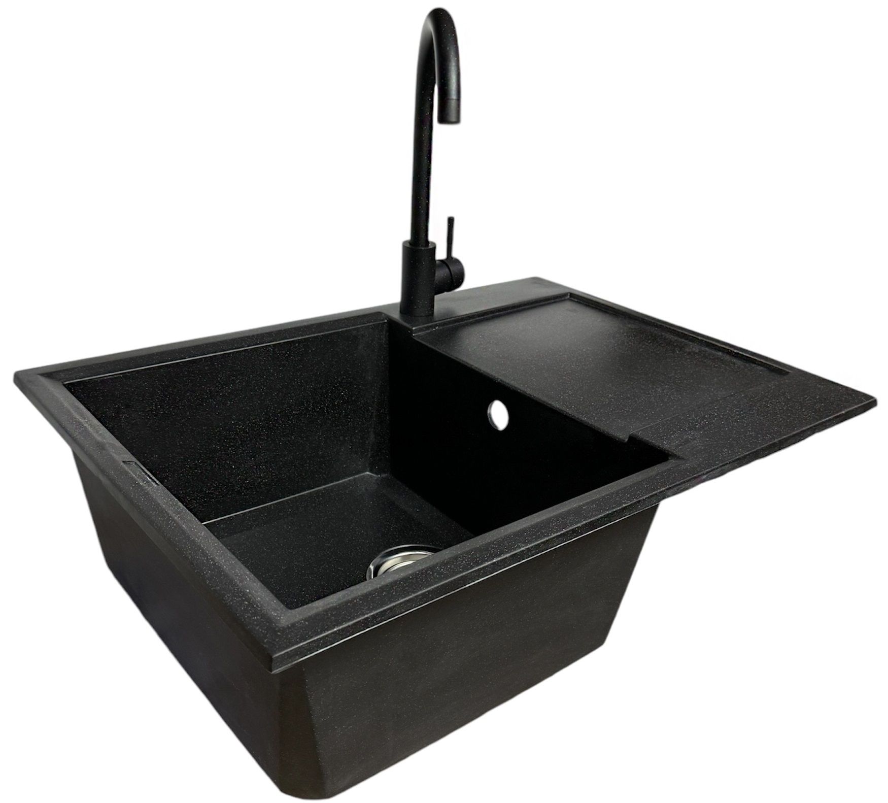 Набір кухонний Adamant Horizon Medium, штучний камінь, прямокут., з крилом, 700х500х230мм, чаша - 1, врізна, чорний + змішувач