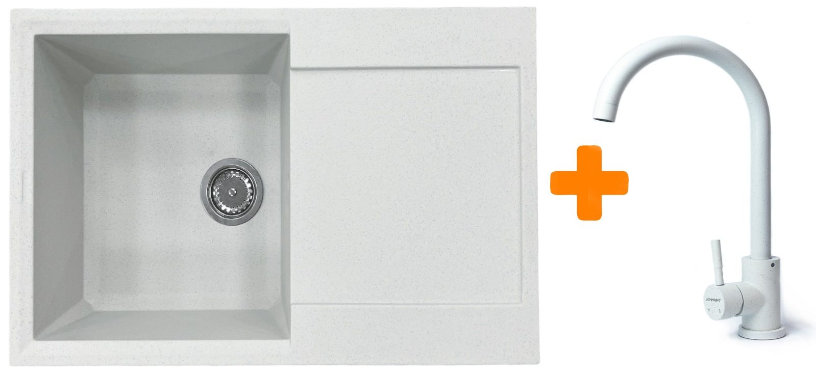 Набір кухонний Adamant Horizon, штучний камінь, прямокут., з крилом, 780х495х230мм, чаша - 1, врізна, Old stone + змішувач