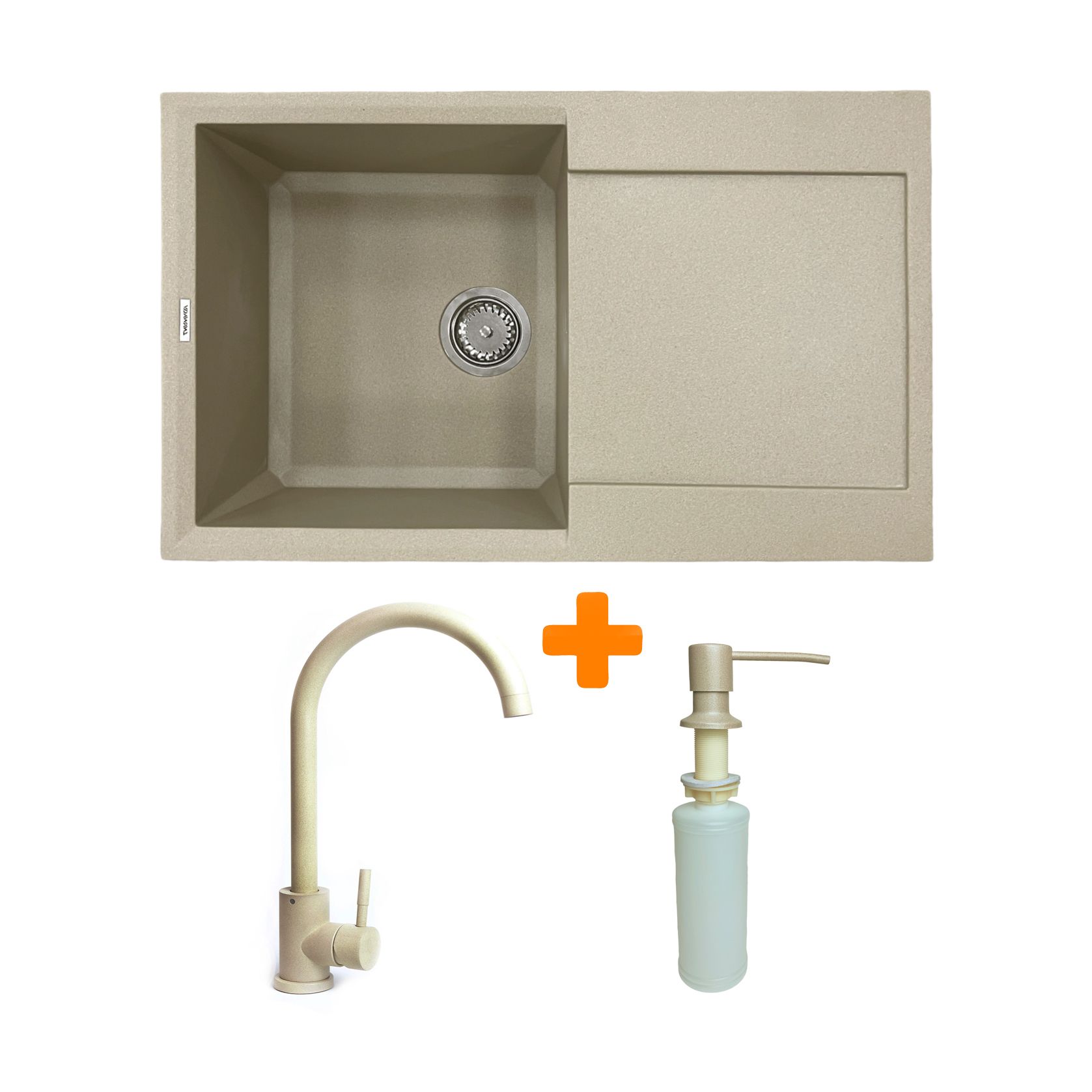 Набір кухонний Adamant Horizon, штучний камінь, прямокут., з крилом, 780х495х230мм, чаша - 1, врізна, Сахара + змішувач та дозатор
