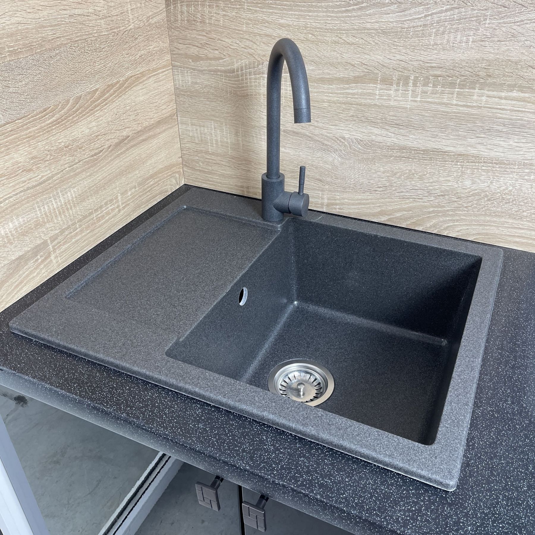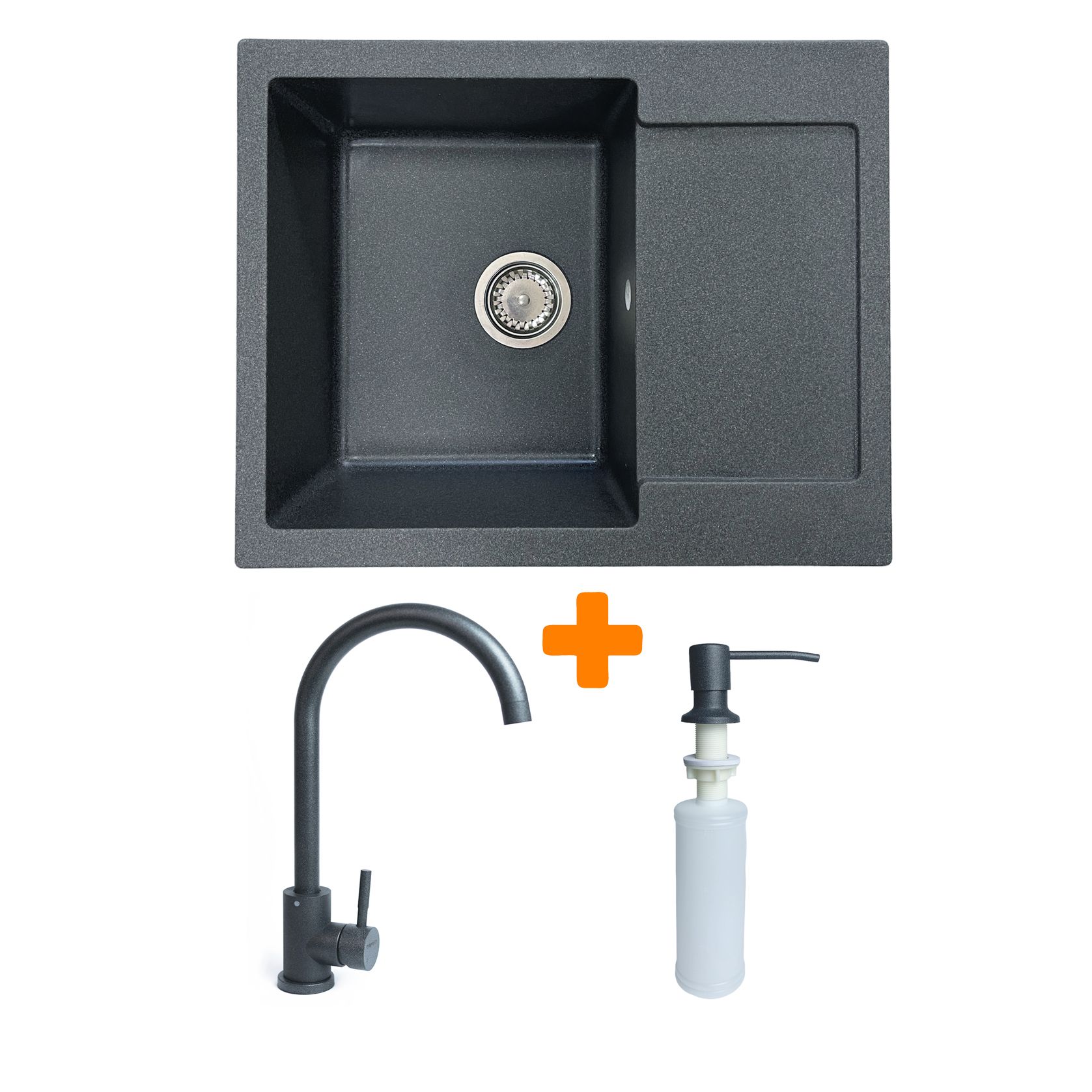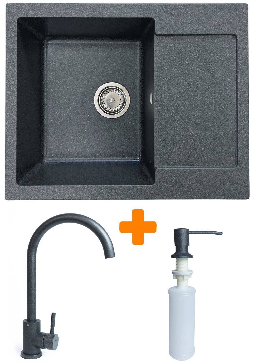 Набір кухонний Adamant Minimal, штучний камінь, прямокут., з крилом, 615х495х200мм, чаша - 1, врізна, графіт + змішувач та дозатор