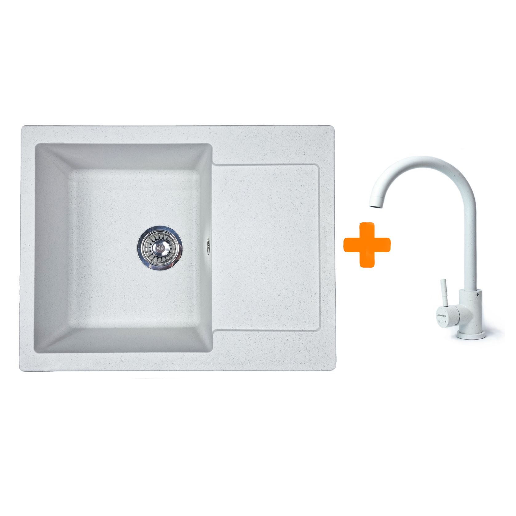 Набір кухонний Adamant Minimal, штучний камінь, прямокут., з крилом, 615х495х200мм, чаша - 1, врізна, Old stone + змішувач