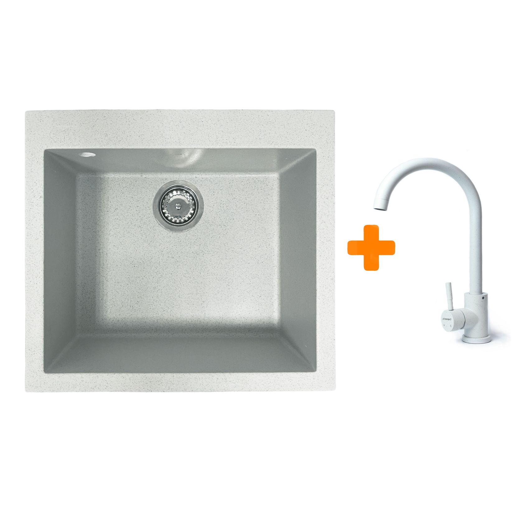 Набір кухонний Adamant Univer, штучний камінь, квадрат, без крила, 560х500х200мм, чаша - 1, врізна, Old stone + змішувач