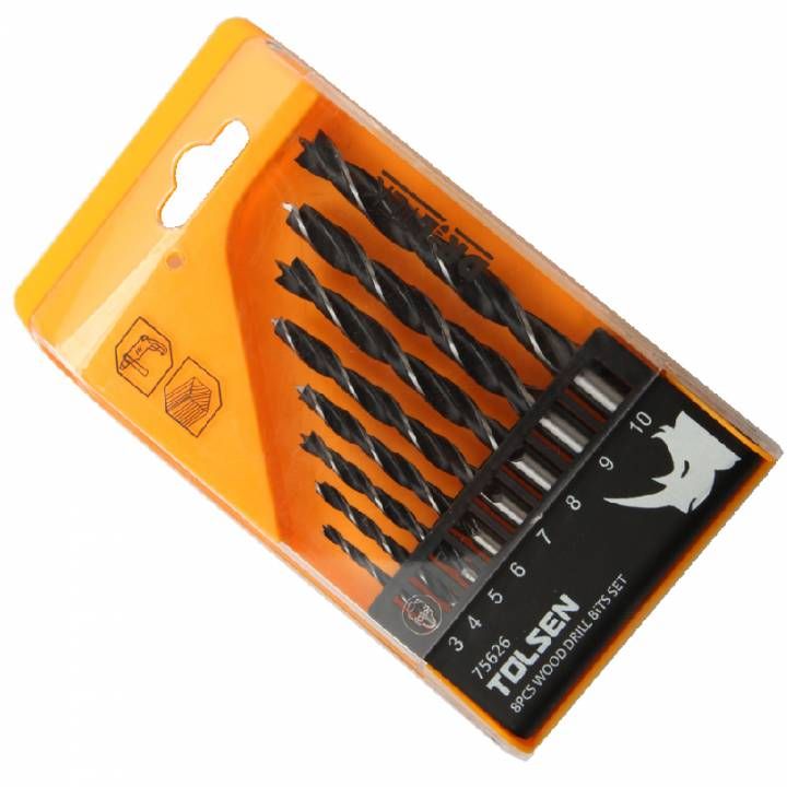 Набір свердел по дереву Tolsen, 8шт, 3-10мм, кейс